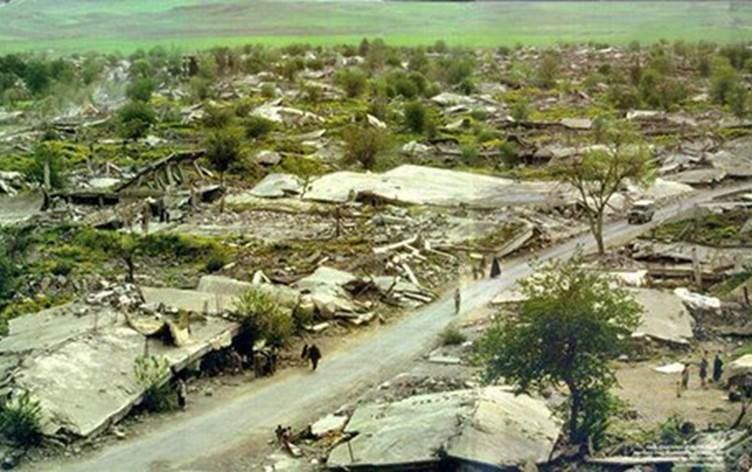 Foto: Baas rejimi tarafından savaş uçaklarıyla bombalanan Qaladizê'nin bonbardıman sonrası çekilmiş fotoğrafı