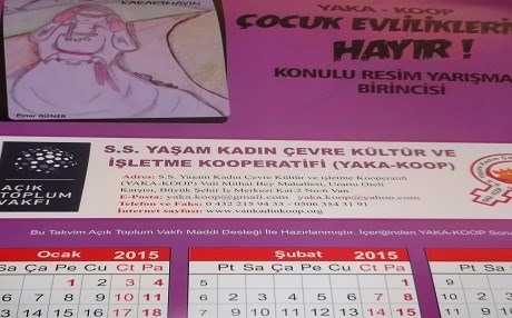 Bunlardan Yaka Kadın Kooperatifi, daha önce okullar arası düzenlenen “küçük yaşta evlilik” konulu resim sergisinden dereceye giren resimleri 2015 yılı için bastırdıkları takvim yapraklarına işledi.