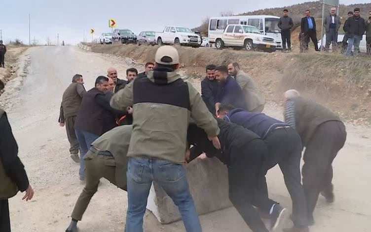 Amedi ile Şeladze arasındaki ana yolu beton bloklarla trafiğe kapatan vatandaşlar, PKK ve Türk Silahlı Kuvvetleri (TSK) arasındaki çatışmalar nedeniyle yıllardır süren mağduriyetlerine dikkat çekti.