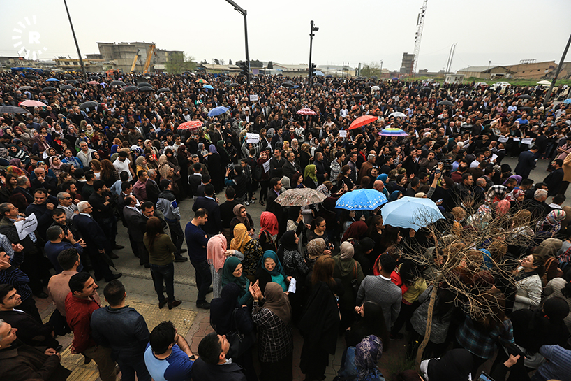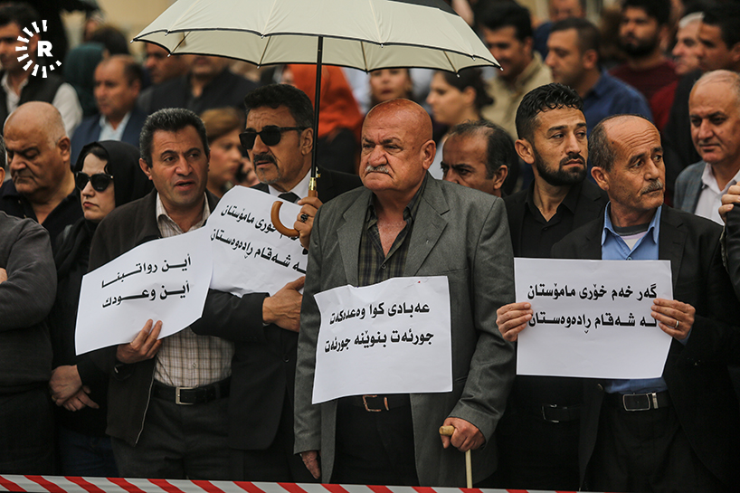 Süleymaniye (Rûdaw) - Kürdistan Bölgesi’ndeki memurlar maaşların iyiliştirilmesi için Süleymaniye ve ilçelerinde protesto gösterileri düzenledi.