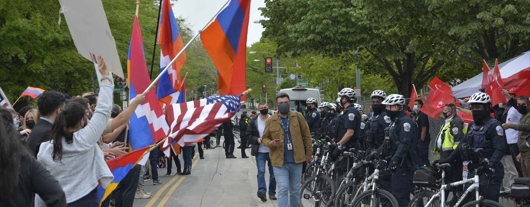 Amerika’da yaşayan Türk ve Ermeni vatandaşlar Türkiye Cumhuriyeti Washington Büyükelçiliği önünde eylem yaptı.