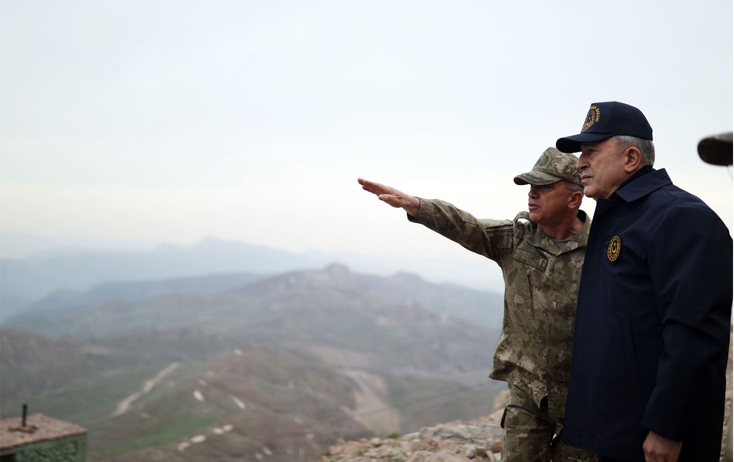 Hulusi Akar, dün beraberinde Genelkurmay Başkanı Orgeneral Yaşar Güler ve Kara Kuvvetleri Komutanı Orgeneral Musa Avsever ile Çukurca ilçesinde sınır bölgesindeki askeri üsse gitti.