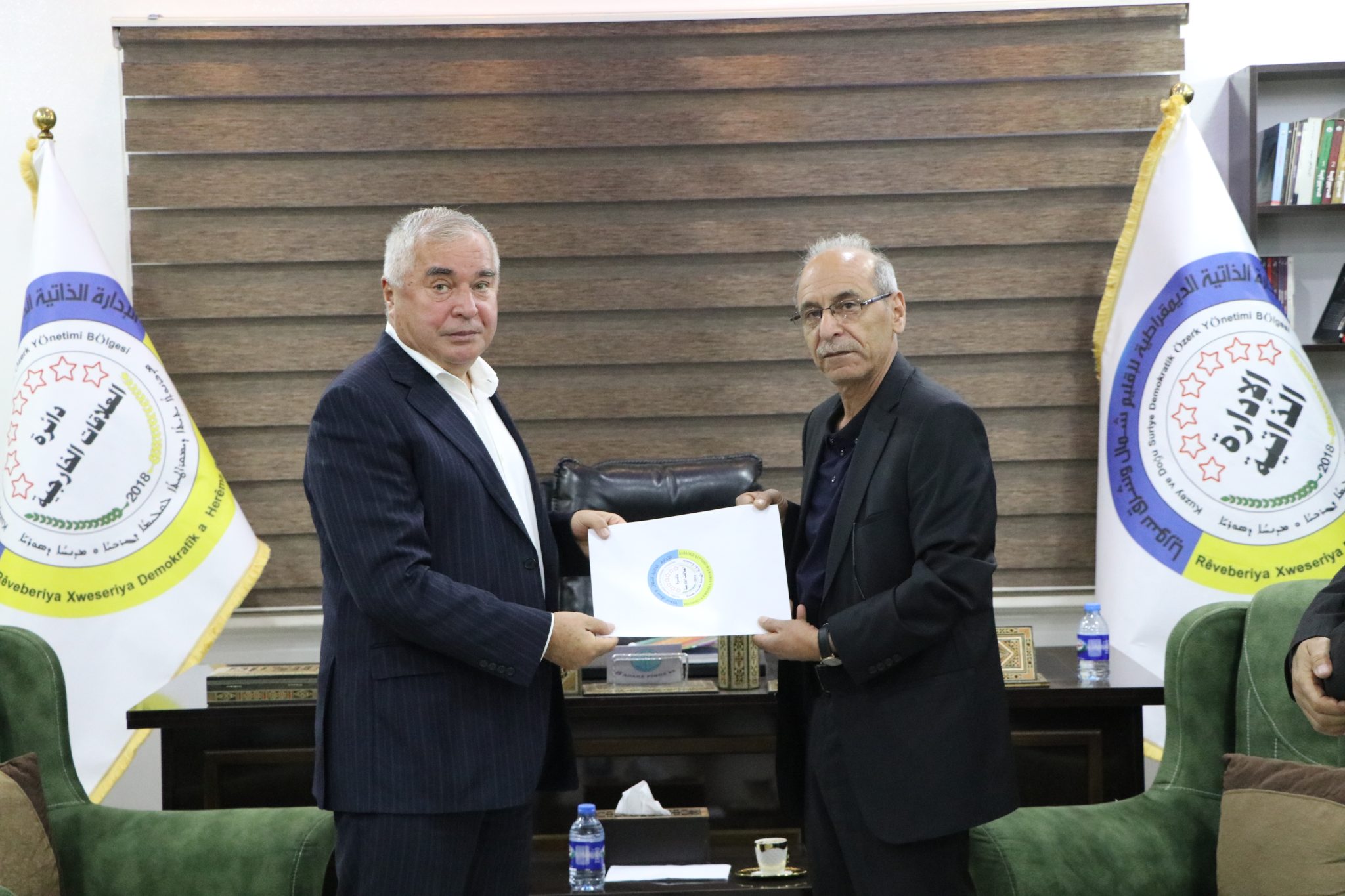 Rojava (Kuzey ve Doğu Suriye) yetkilileri, Tacikistan Cumhuriyeti'nin Kuveyt Büyükelçisi Zubaidullah Zubairov başkanlığındaki heyeti Kamişlo'daki genel merkezinde kabul etti.