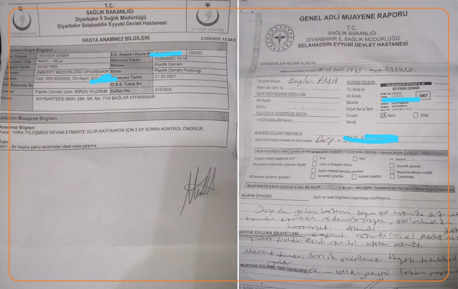 Selahattin Eyyubi Devlet Hastanesi’ne başvurarak darp raporu alan Kevser Demir, polislerden şikayetçi oldu.