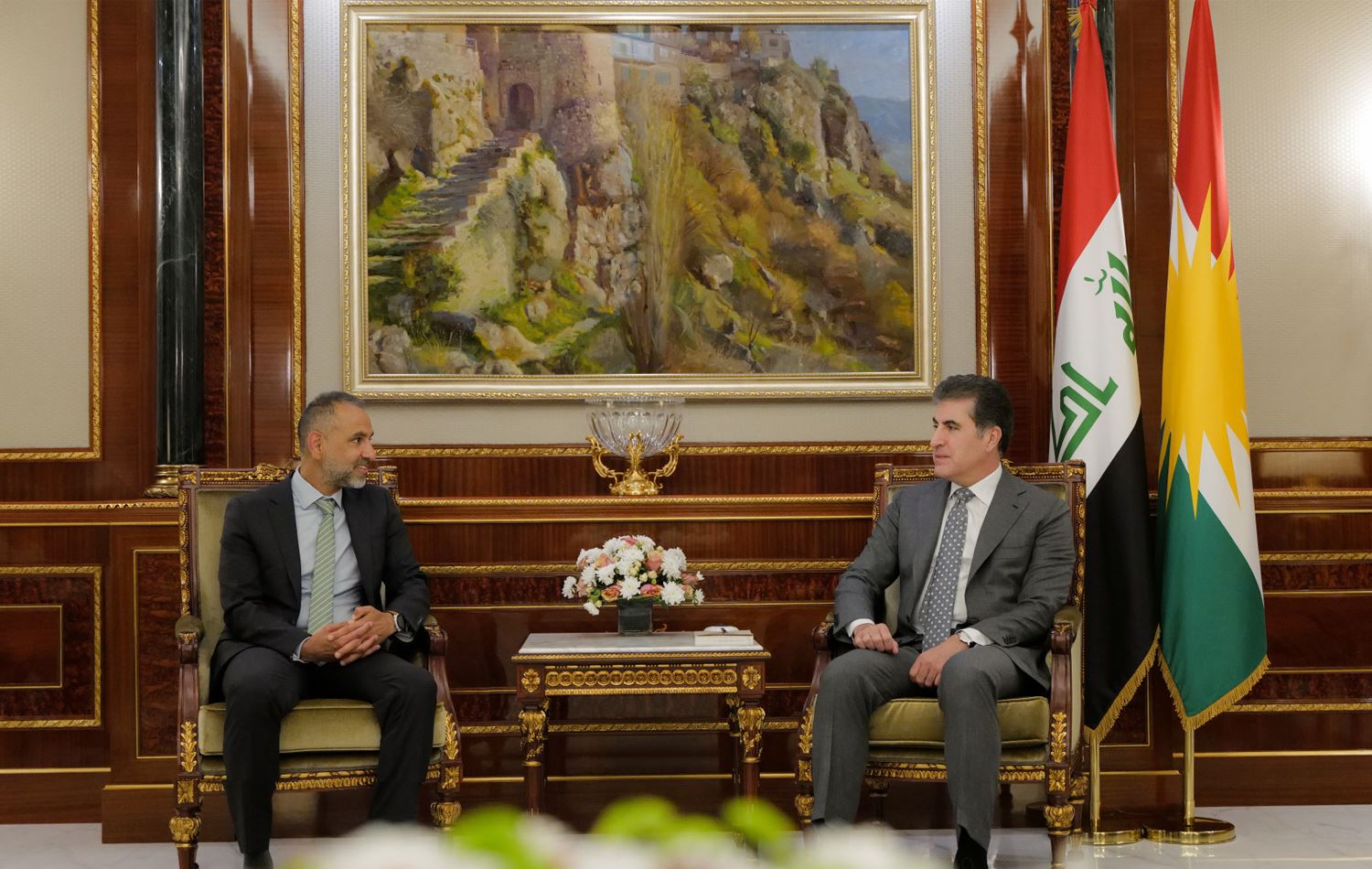 Erbil (Rûdaw) - Kürdistan Bölgesi Başkanı Neçirvan Barzani, İngiltere’nin Irak Büyükelçisi Irfan Siddiq’i kabul etti. Görüşmede, Erbil ile Bağdat arasındaki sorunların diyalog, anlayış ve uzlaşı yoluyla çözülmesinin ve Kürdistan Bölgesi Hükümeti’nin yeni kabinesinin kurulmasının önemine vurgu yapıldı.