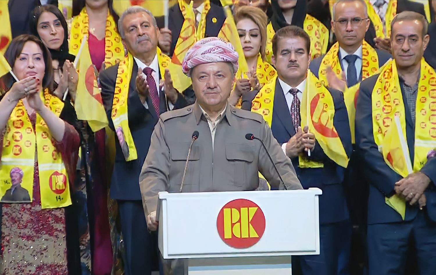Değerli arkadaşlar, sevgili kardeşler... Hepiniz hoş geldiniz. Bu kutsal günde sizleri, tüm Kürdistan halkını tebrik etmek istiyorum. 25 Eylül, Kürdistan halkının iradesinin kırılmasına izin vermemeye karar verdiği, kendini ezmediği gündür. Bu günde, parlamento seçimlerinin altıncı döneminin kampanyası başladı. Saygıdeğer adayları tebrik ediyor ve başarılar diliyorum. Yüce Allah'a, Kürdistan'ın tüm vefalı insanlarına ve ölümsüz Barzani'nin sözüne güvenerek; her vefalı Kürt KDP'lidir ve KDP'lilerin gayretiyle 20 Ekim'e hazırlanıp büyük bir zafer kazanacağız.