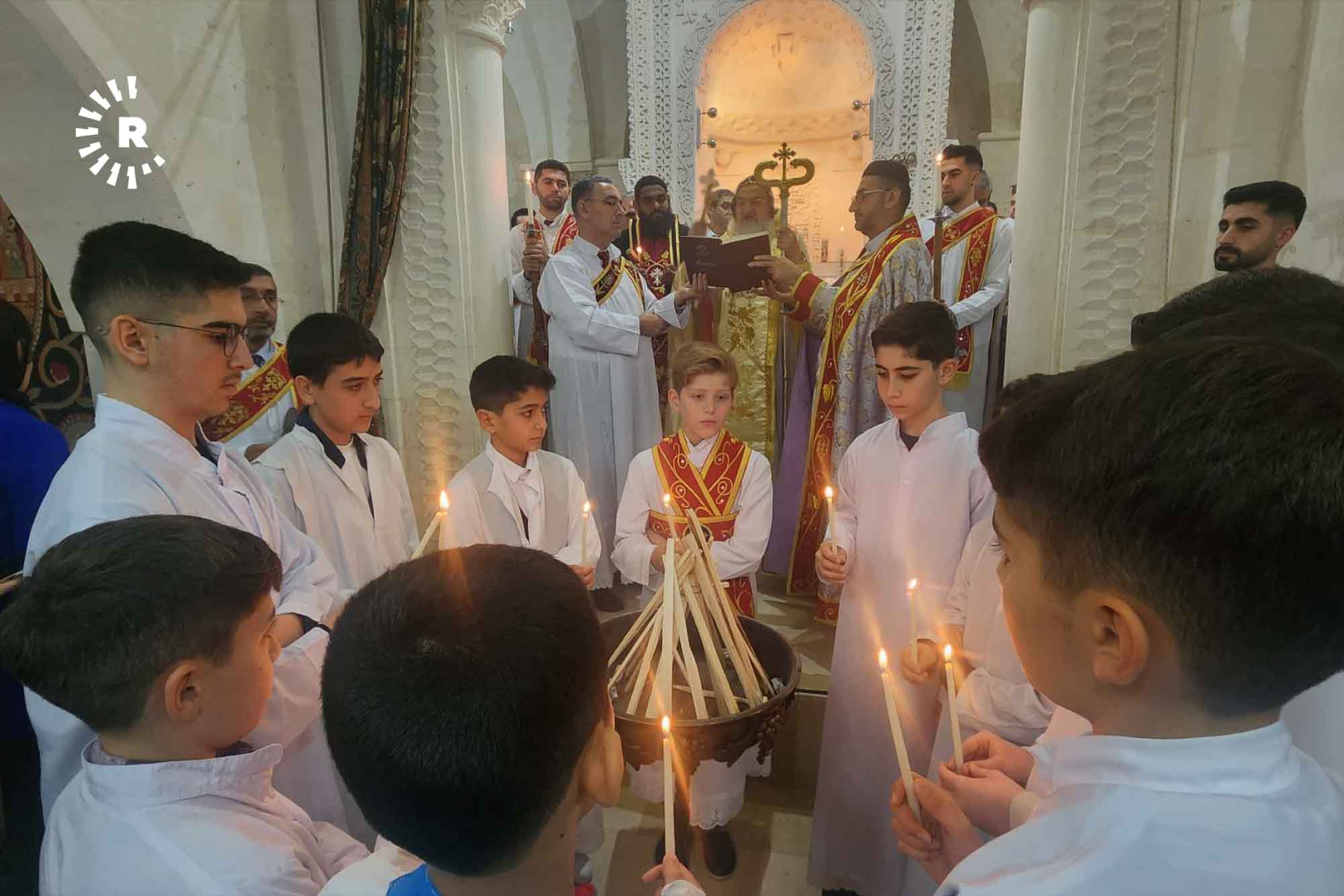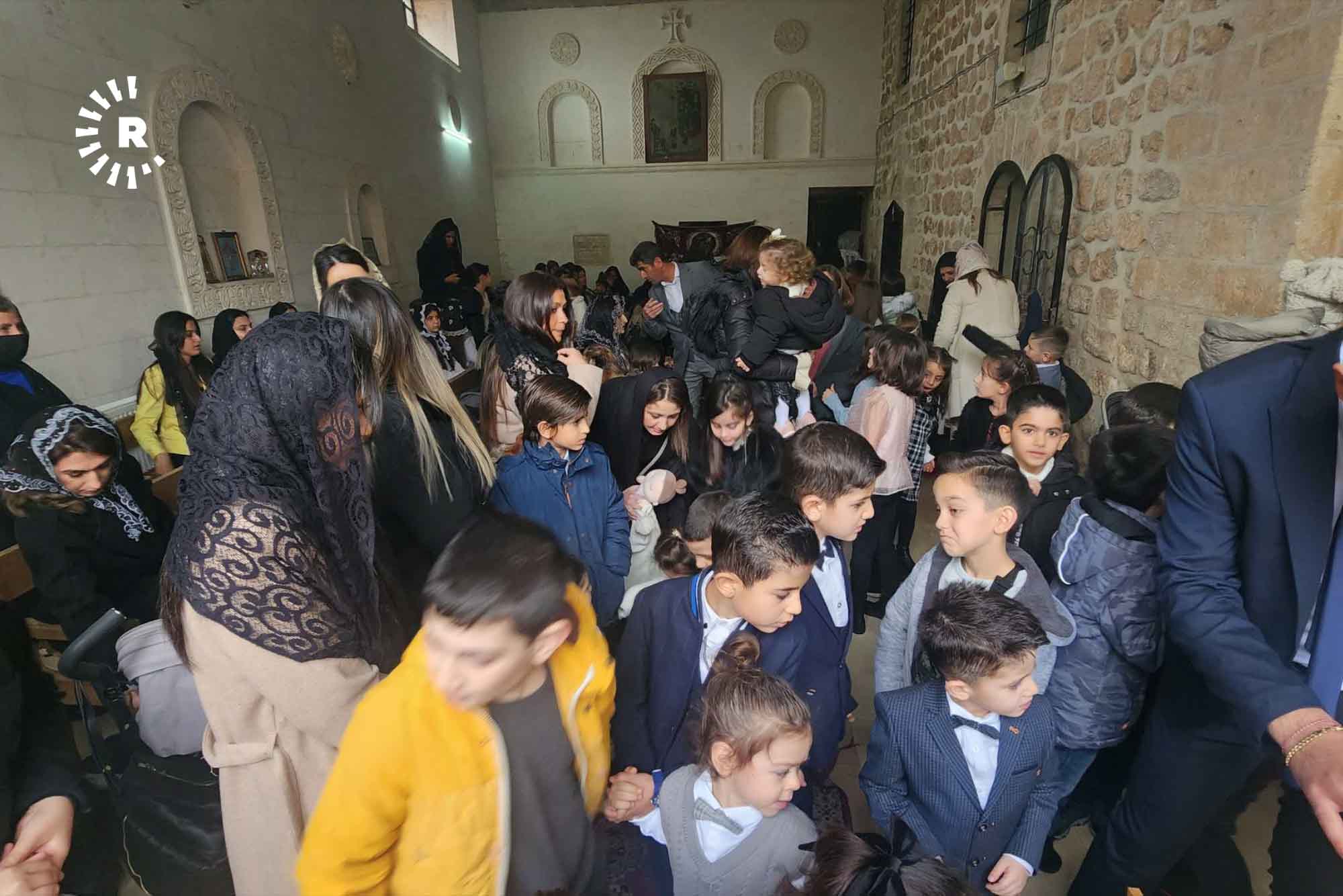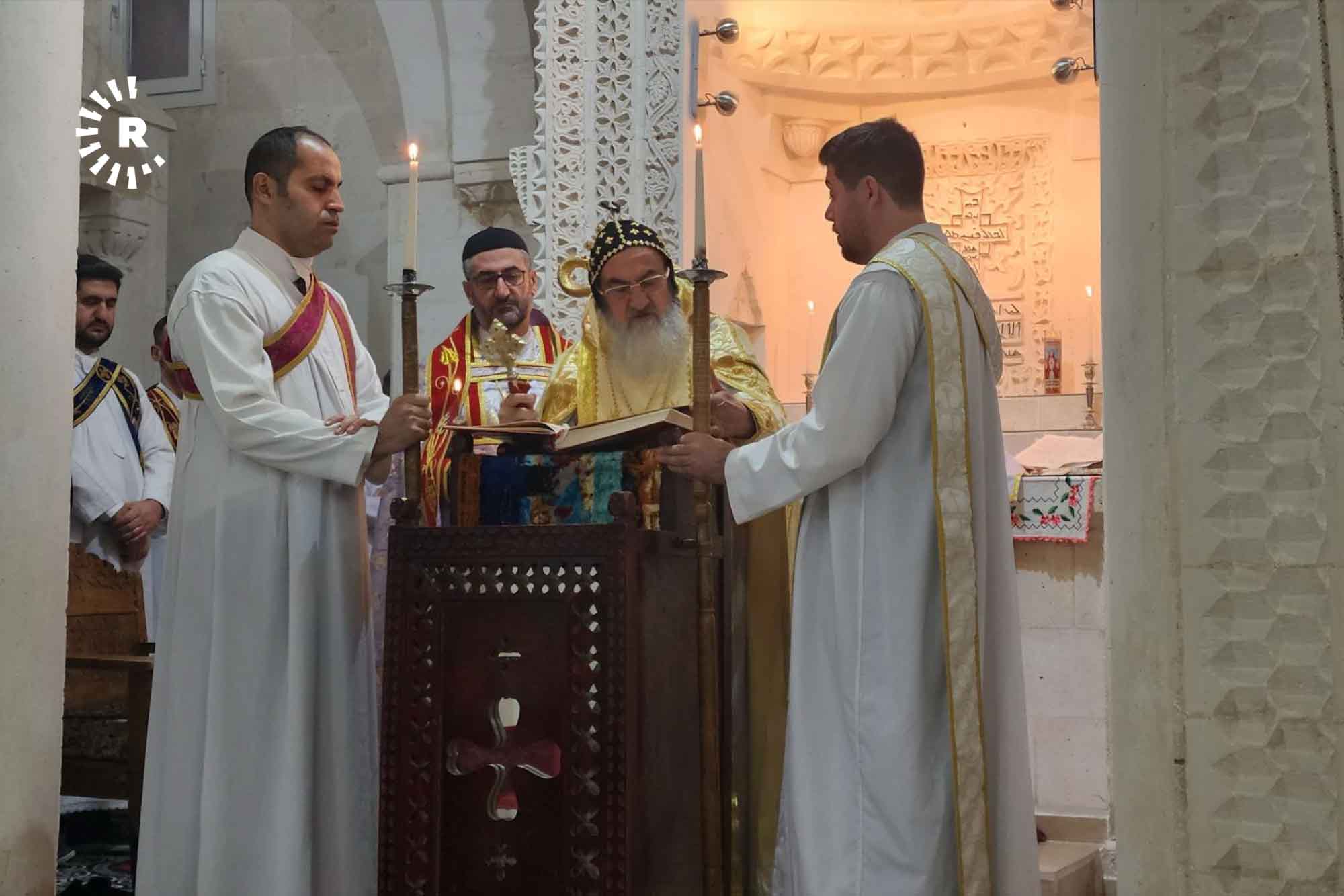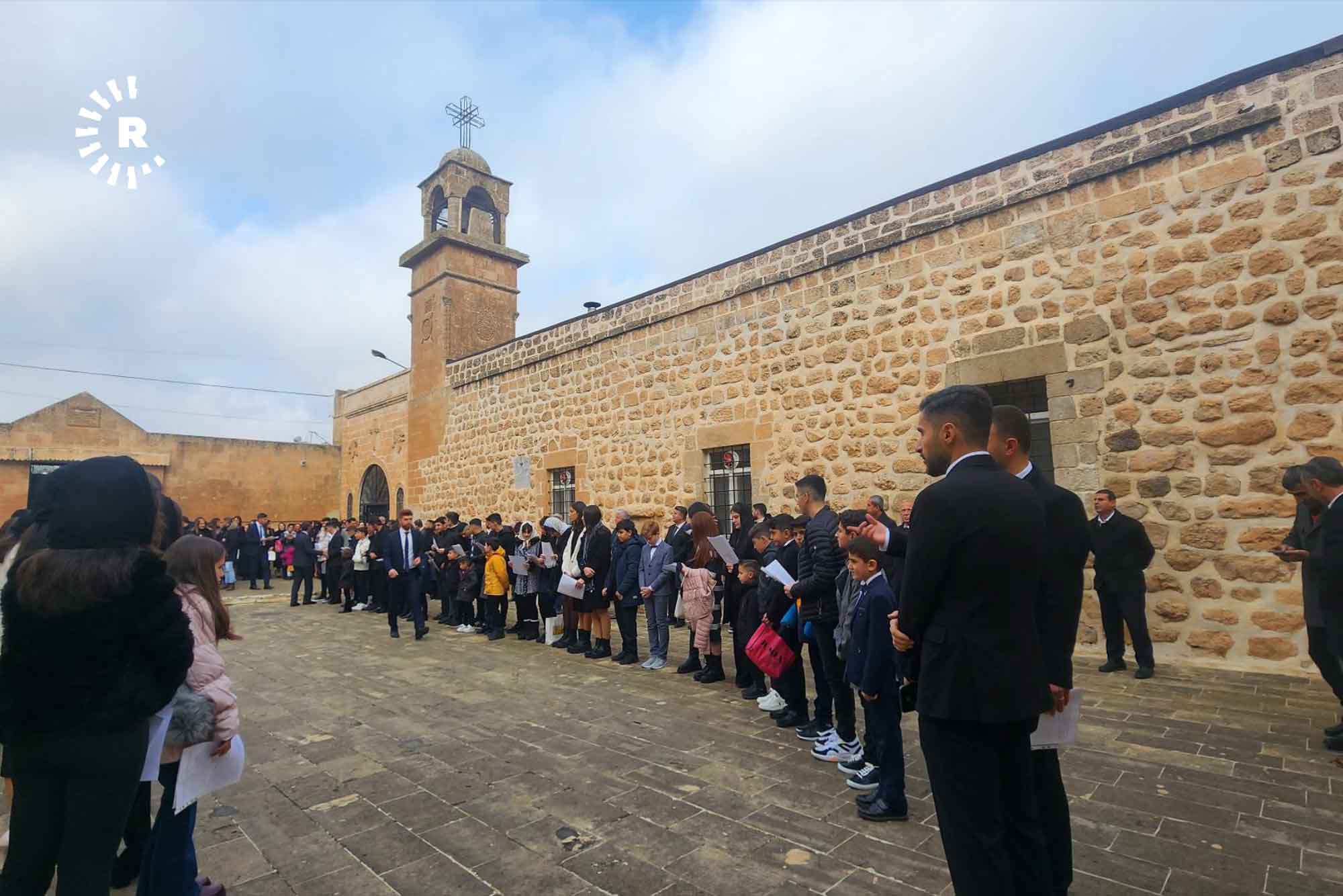 Mardin'in Midyat ilçesindeki Mor Şemun Kilisesi'nde Noel Bayramı için ayin düzenlendi.