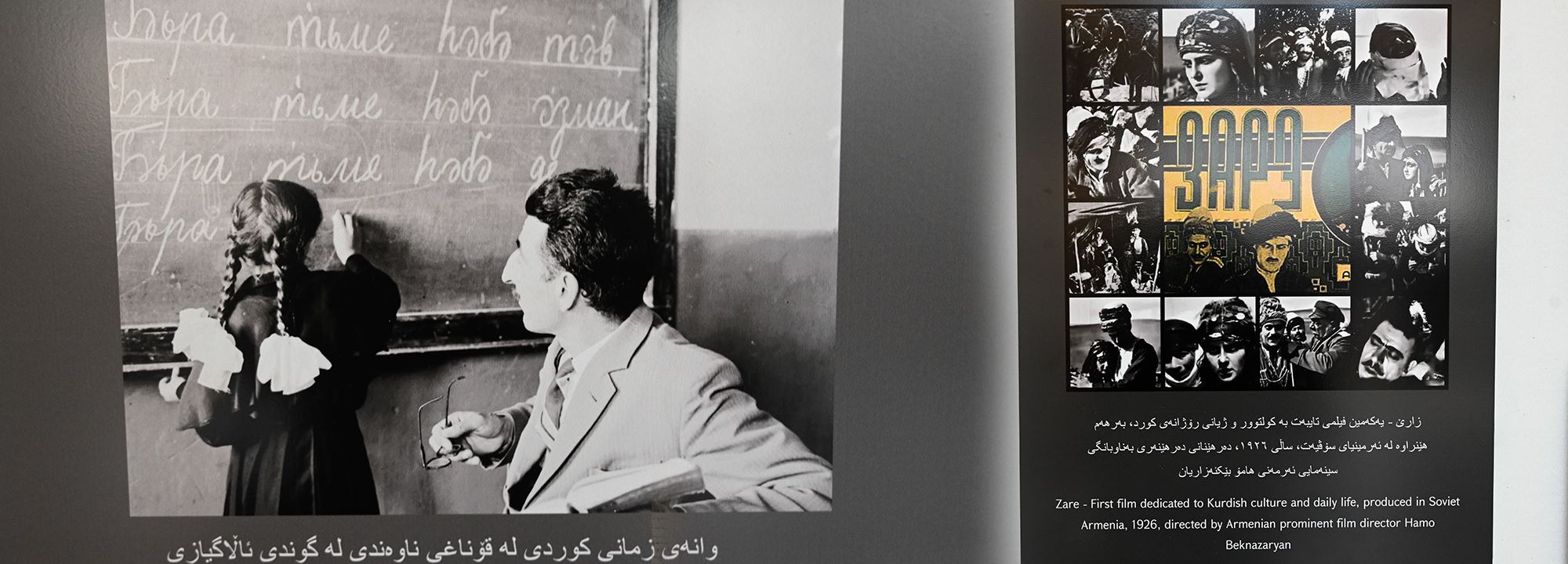 Sergide, Ermenistan’daki Kürtçe okulların fotoğraflarının, ilk Kürt filmi Zare’nin görsellerinin, 1930’da yayın hayatına başlayan ve hala devam eden ilk Kürtçe gazete Rêya Taze’nin sayılarının yer aldığı çeşitli dönemlere ait belgeler sunuldu.
