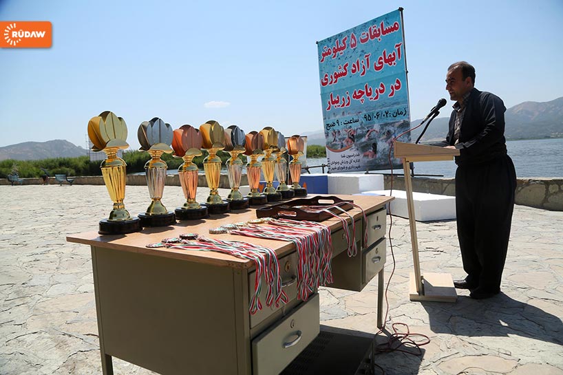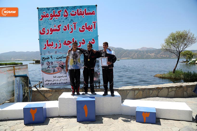 Merivan (Rûdaw) - Rojhılat’ın (İran Kürdistanı) Zirebar Gölü’nde, Rojhılat ve İran’ın 12 farklı kentinde 80 yüzücünün katıldığı yüzme turnuvası düzenlendi.