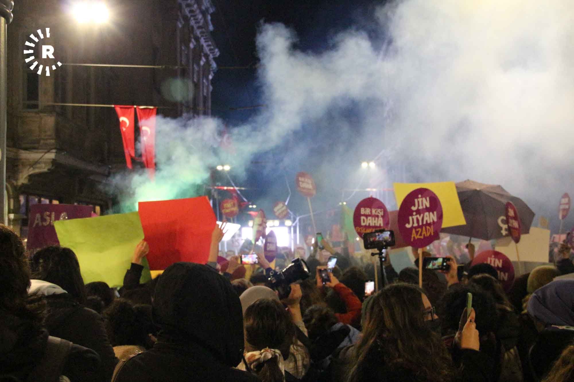 Polis eylemci kadınlara biber gazı ve plastik mermi ile müdahalede bulundu ve çok sayıda kadını gözaltına aldı.