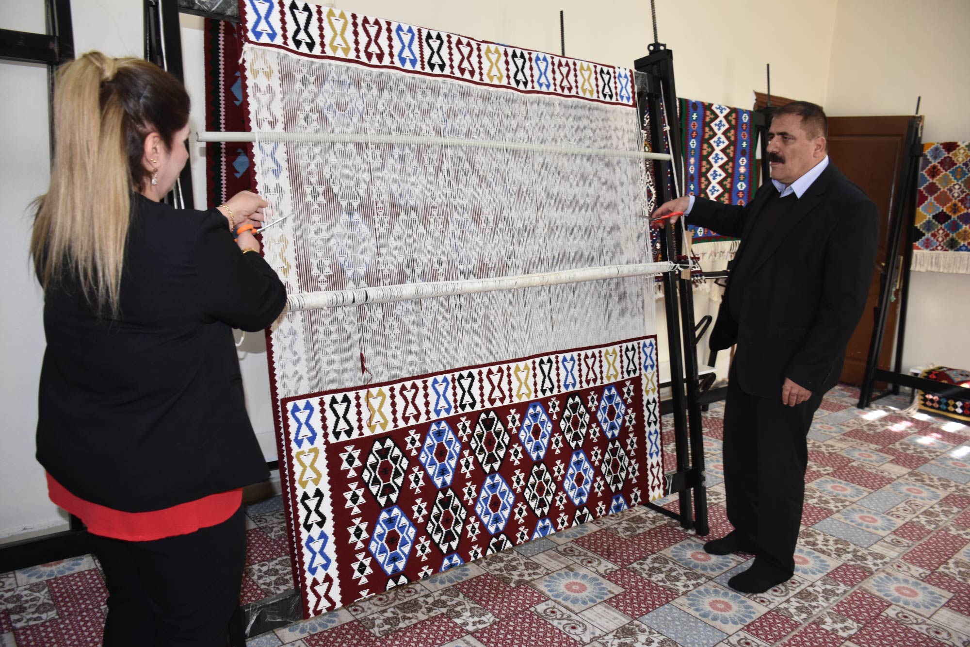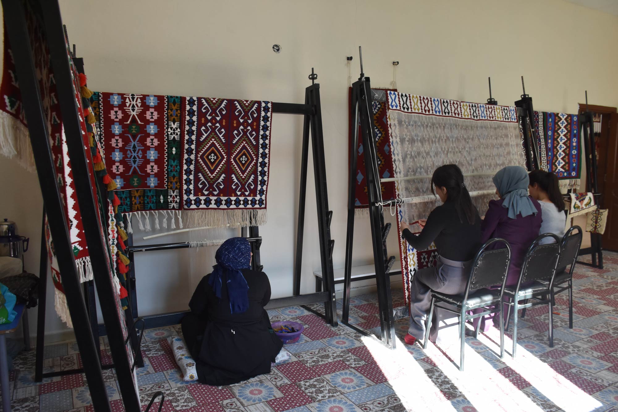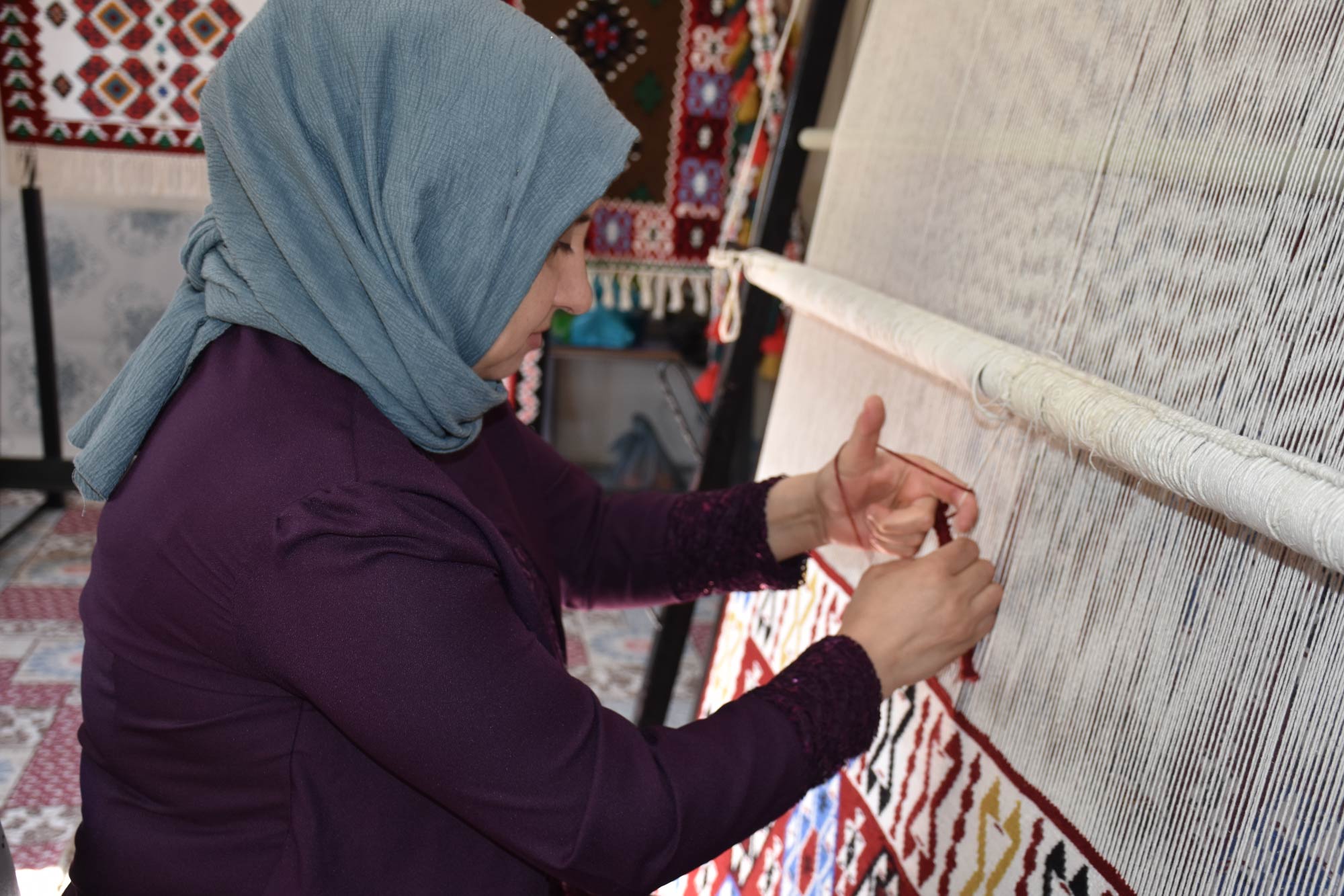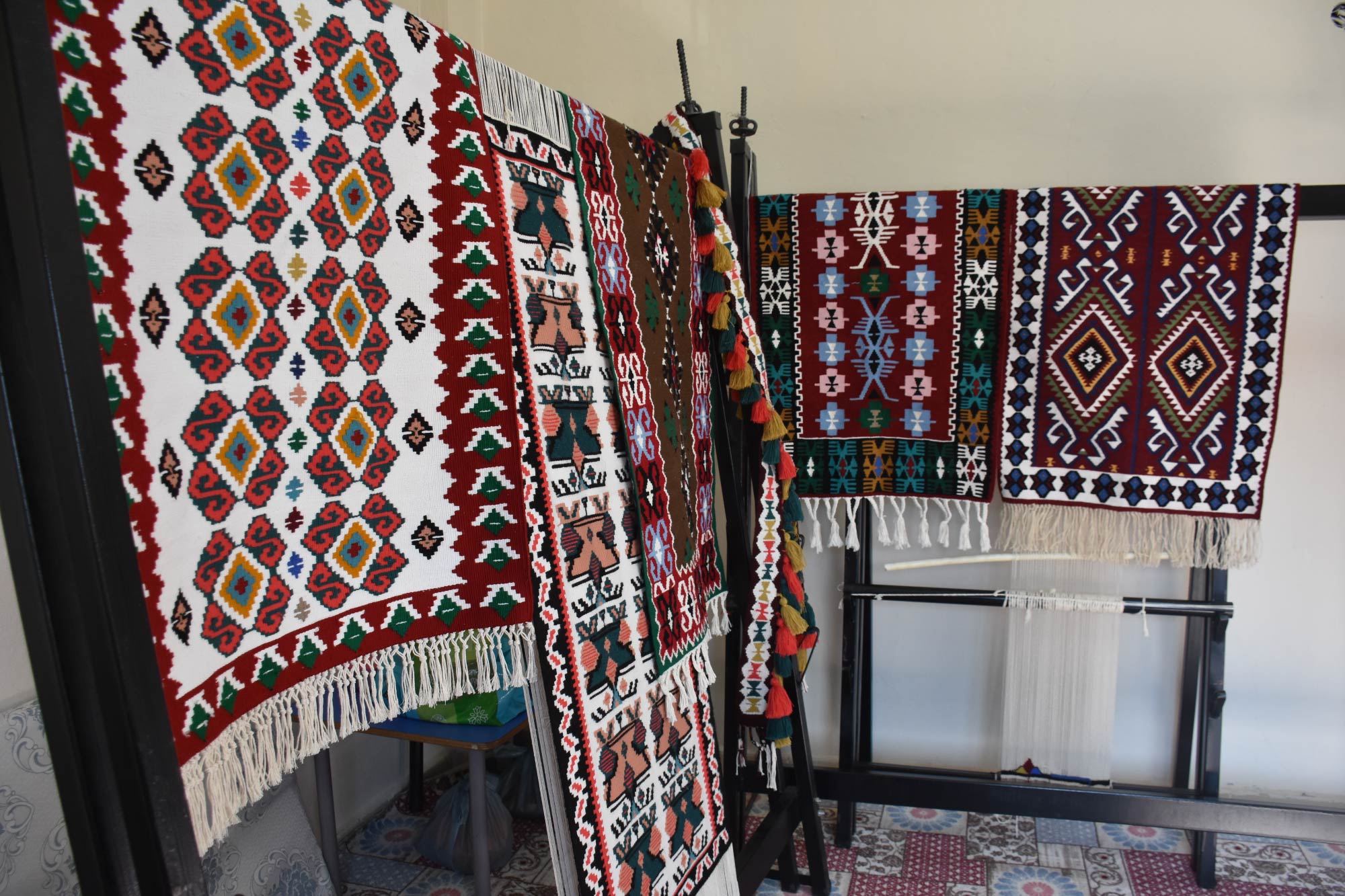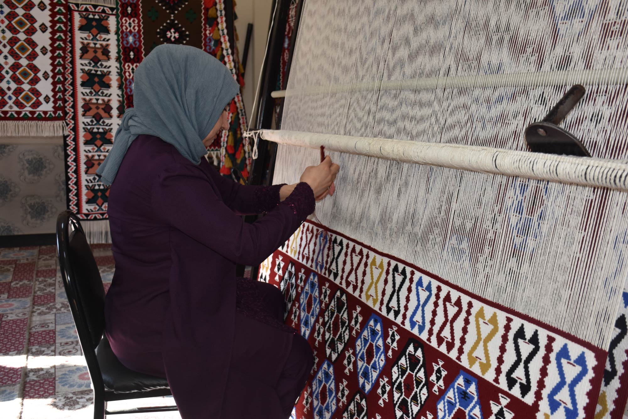 Gelen siparişlere göre farklı motiflerle yapılan halı ile Jirki, Maraş ve Uludere kilimleri yurt içi ve dışına satılıyor.