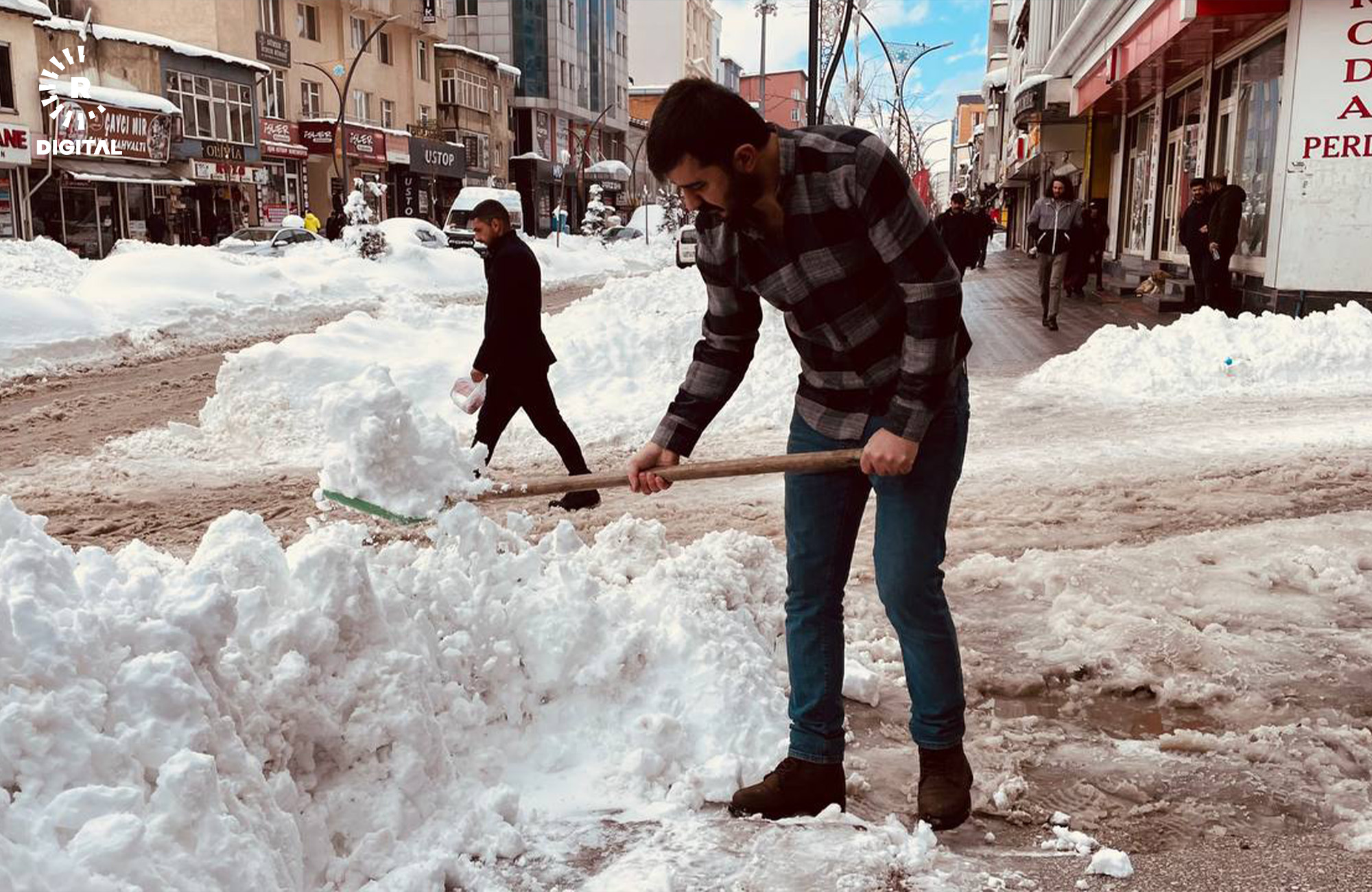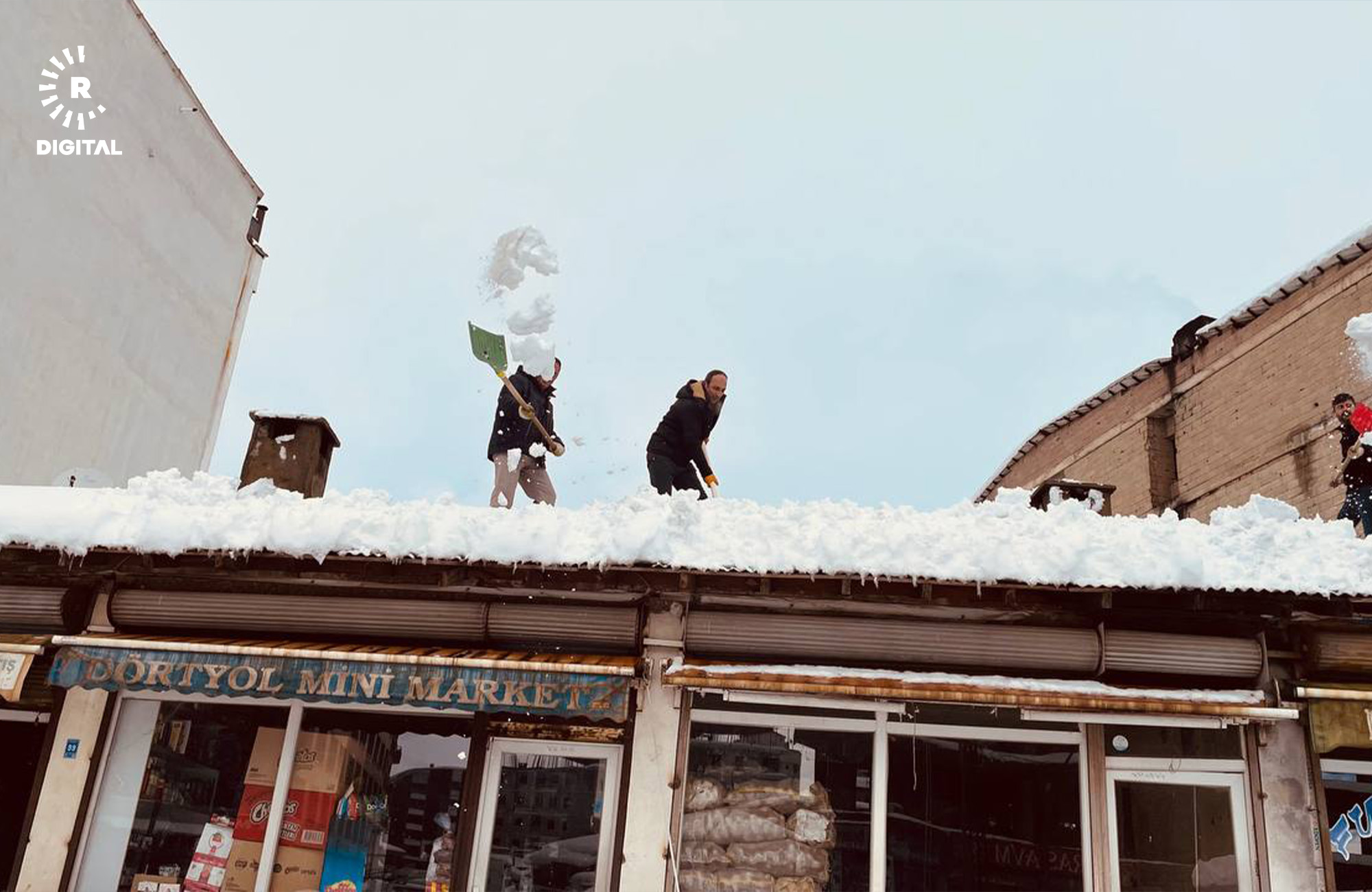 Vatandaşlar, ev ve iş yerlerinin önünde biriken karları, bazı vatandaşlarda çatılarda biriken karları temizledi