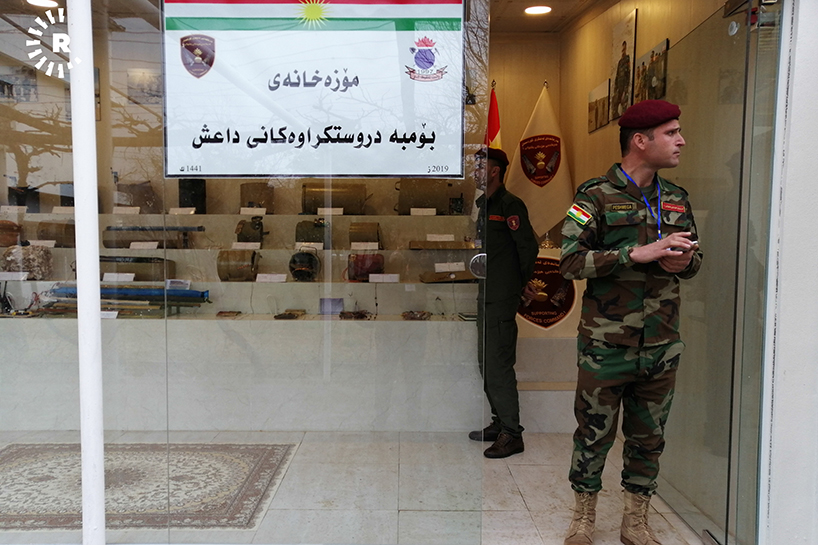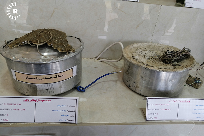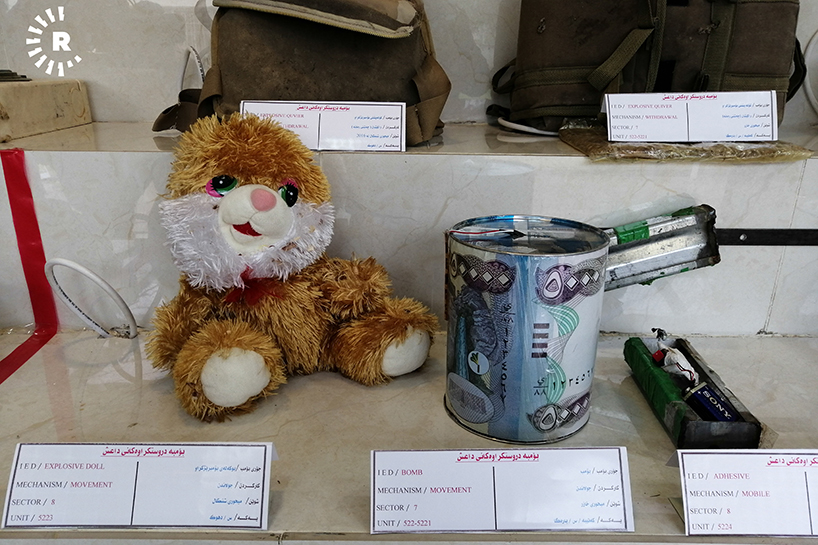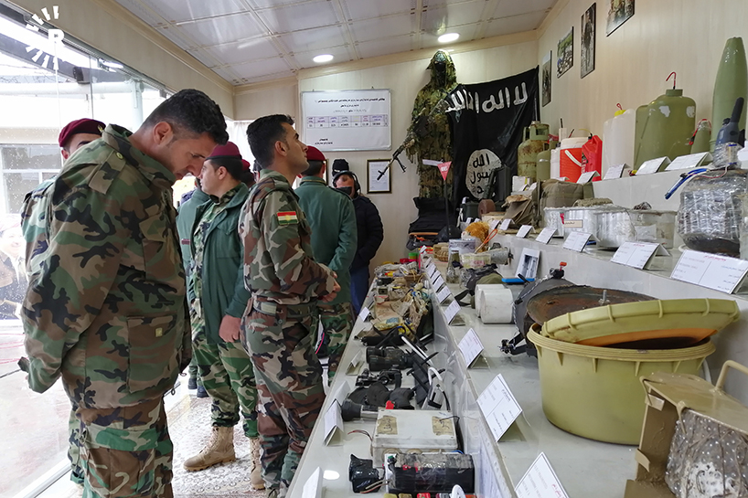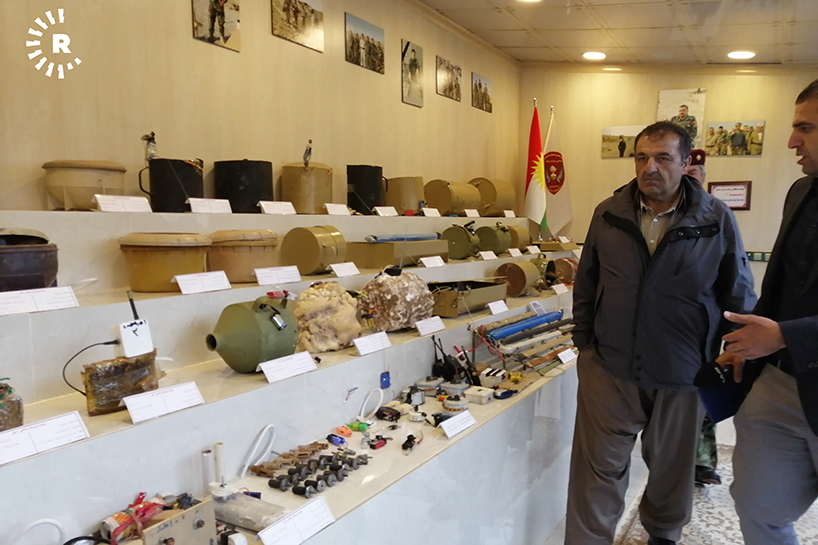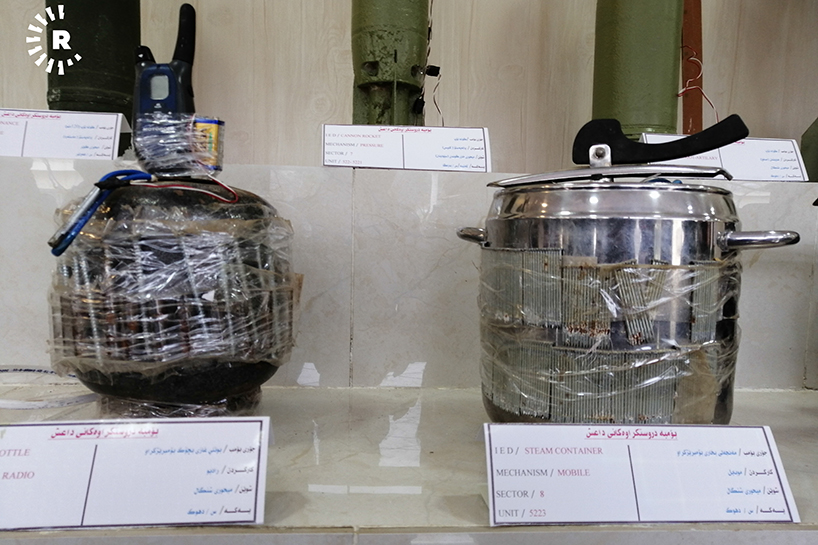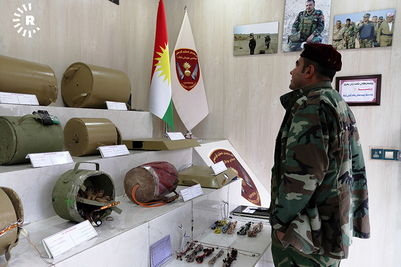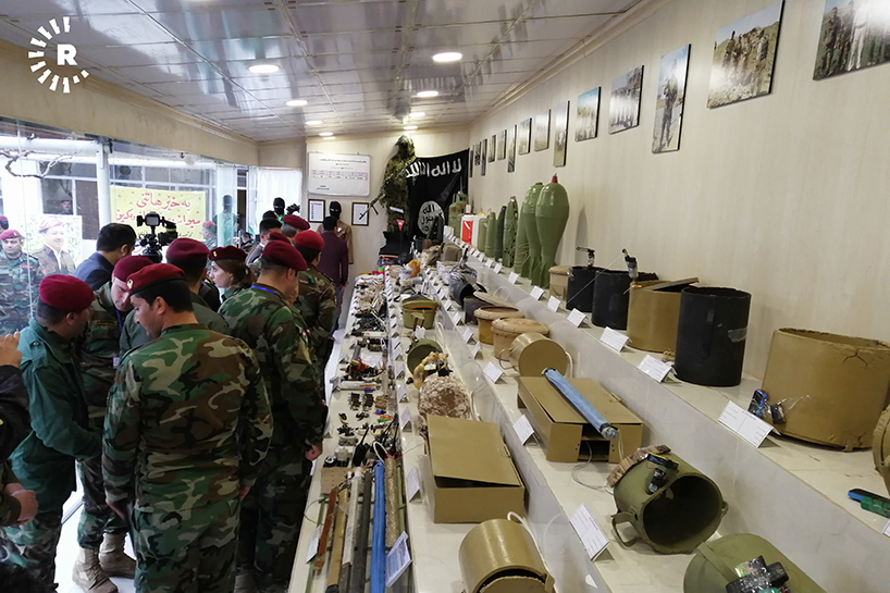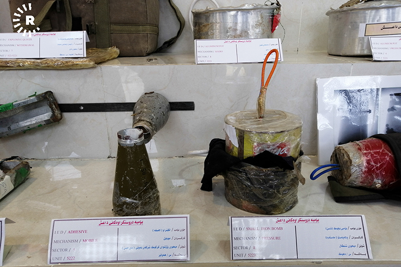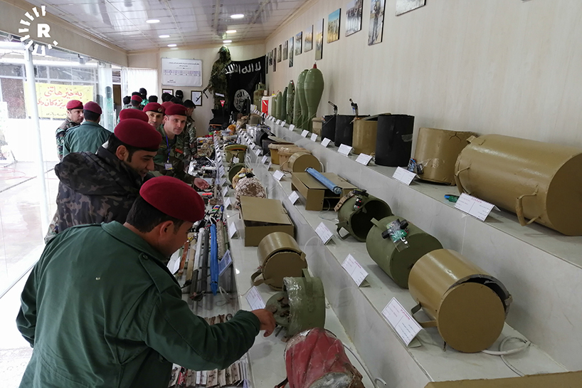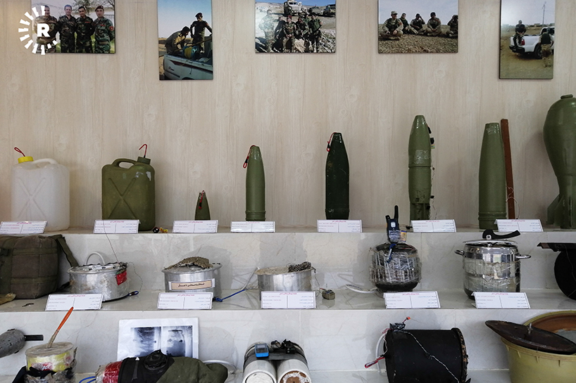 Erbil (Rûdaw) - Peşmerge Güçleri Birinci Destek Gücü Patlayıcı Uzmaları Birliği, Erbil’in Selahattin ilçesine bağlı Kore kasabasındaki bir müzede etkisiz hale getirilen IŞİD patlayıcılarını sergiledi.