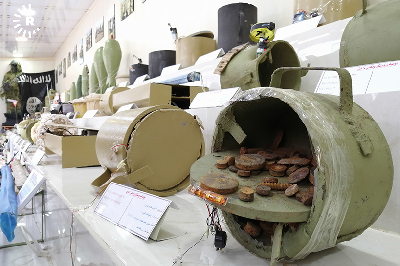 Müzede 120 çeşit bomba, mayın ve düzenekleri yer aldı. Peşmerge Güçleri Birinci Destek Gücü Patlayıcı Uzmaları Birliği savaş boyunca değişik çapta 18 bin 932 bombayı etkisiz hale getirdi.