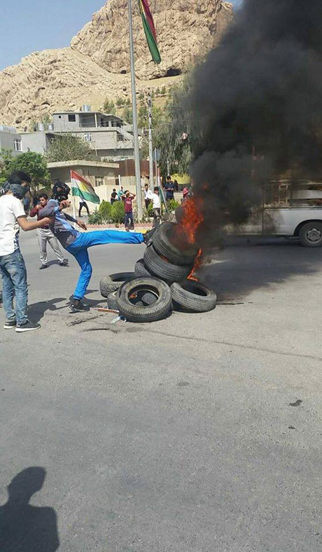 Seyid Sadık (Rûdaw) - Süleymaniye’nin Seyid Sadık ilçesinde göstericiler, Halepçe’ye giden yolda lastik yakıp trafiği kapattı.