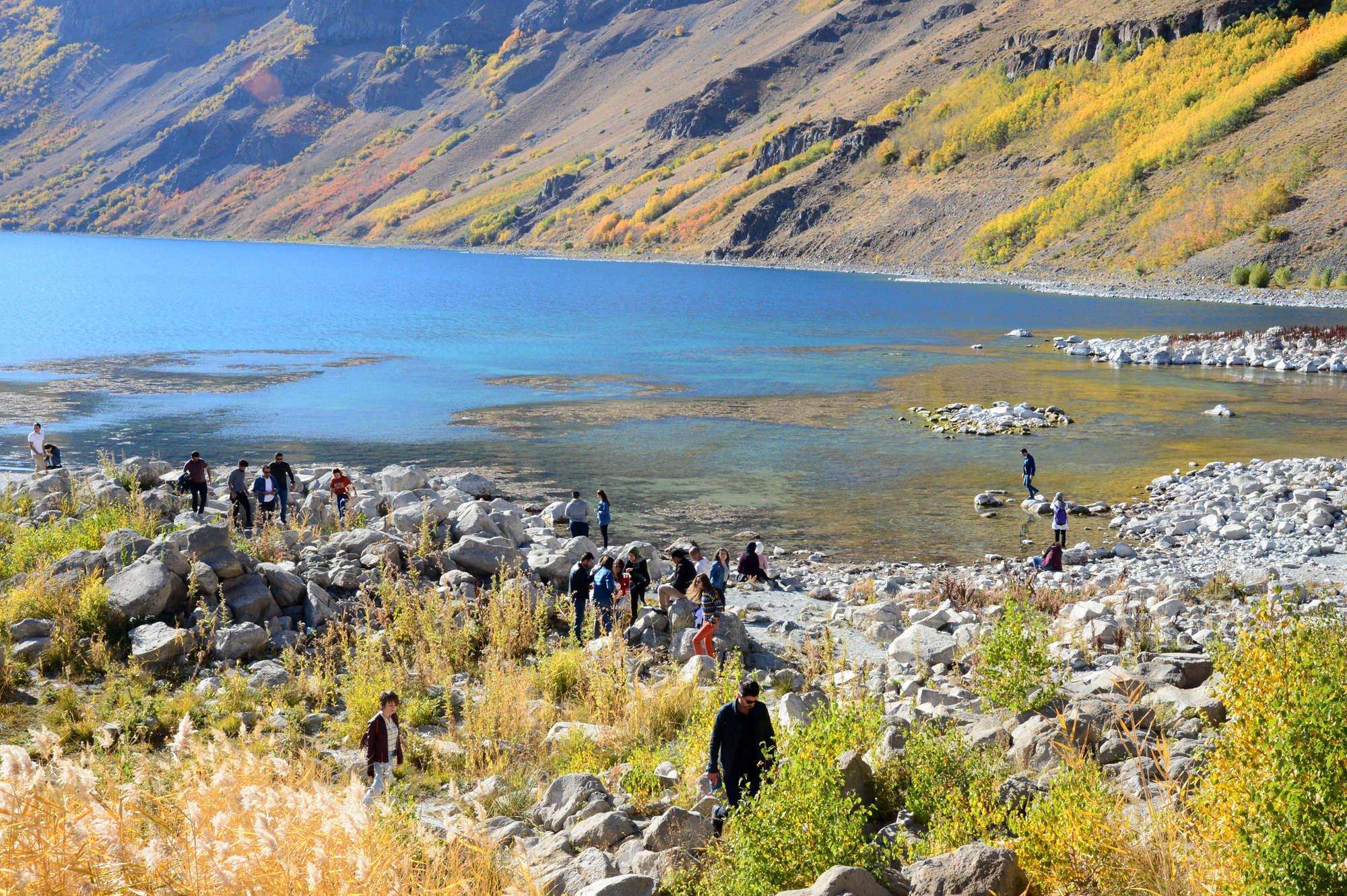 Bitlis'in Tatvan ilçesinde dünyanın ikinci, bölgenin ise en büyük krater gölü Nemrut, sonbaharda sarı, yeşil ve kırmızının tonlarına büründüğü muhteşem manzarasıyla ziyaretçilerini ağırlıyor.
