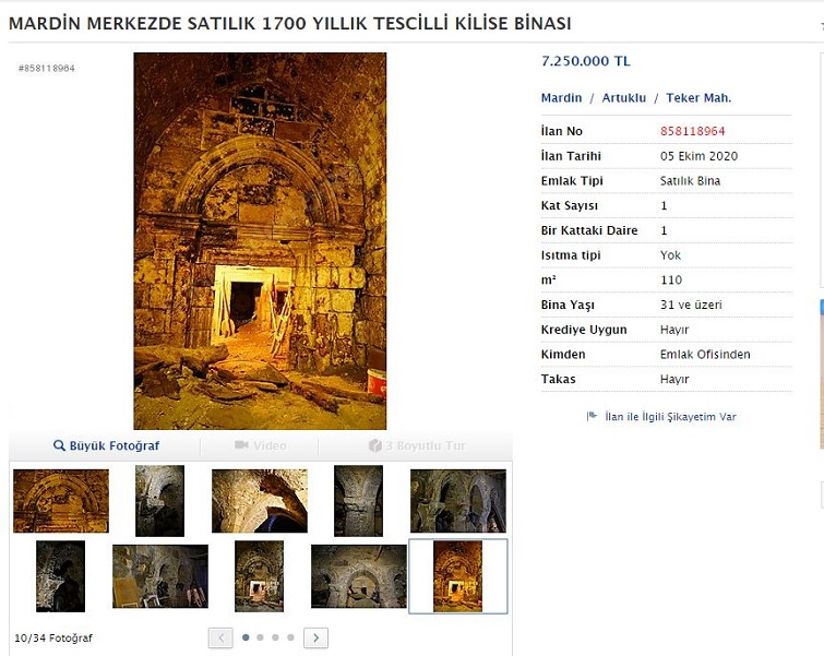Haber Merkezi - Mardin’de bulunan 1700 yıllık tescilli Mor Yuhanna Süryani Kilisesi, internet ortamında satışa çıkartıldı.