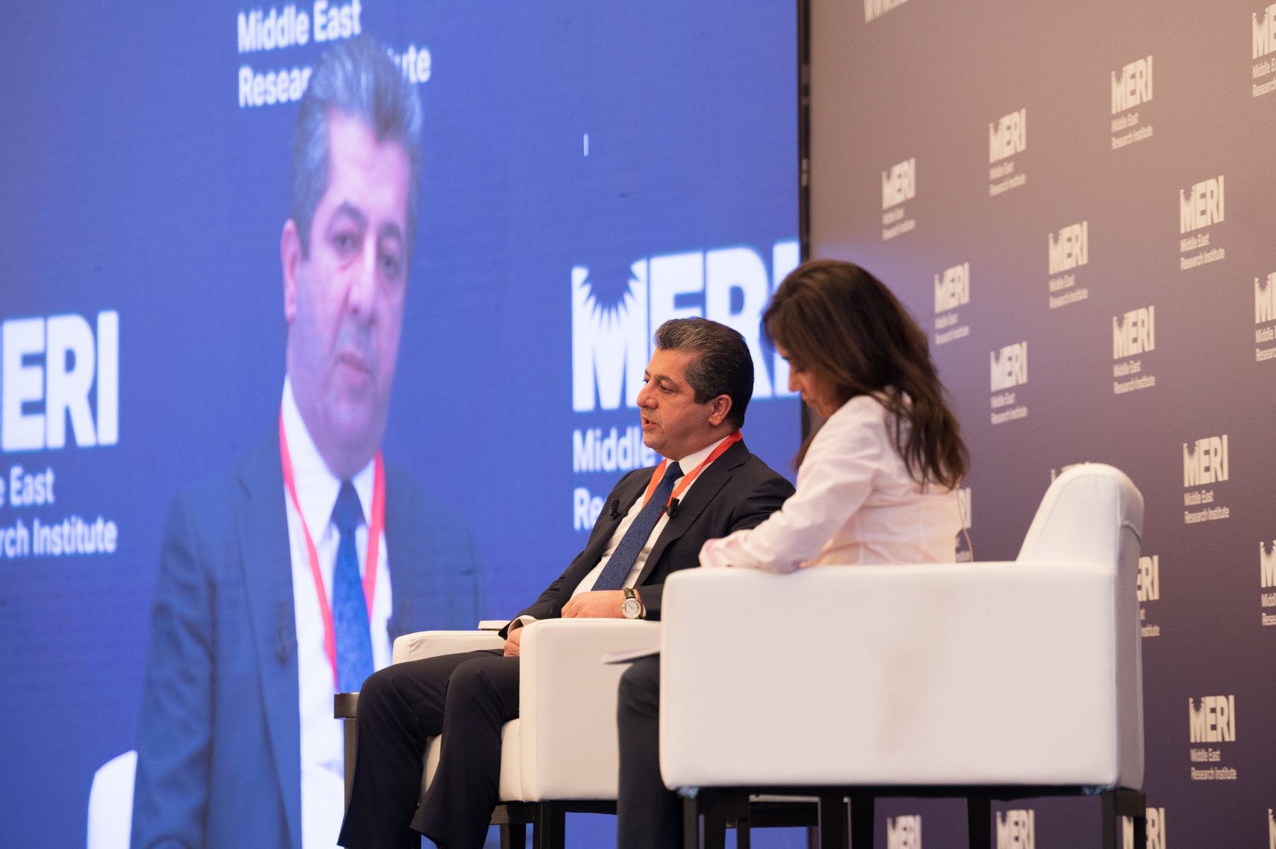 “İstikrarlı bir Ortadoğu için istikrarlı bir Irak” adıyla gerçekleştirilen 2021 MERI Forumunun ikinci gününde Kürdistan Bölgesi Başbakanı gazeteci Amberin Zaman’ın yönettiği “Kürdistan Bölgesi geleceğe bakıyor: stratejiler, zorluklar ve fırsatlar” başlıklı panelde kendisine yöneltilen soruları yanıtladı.