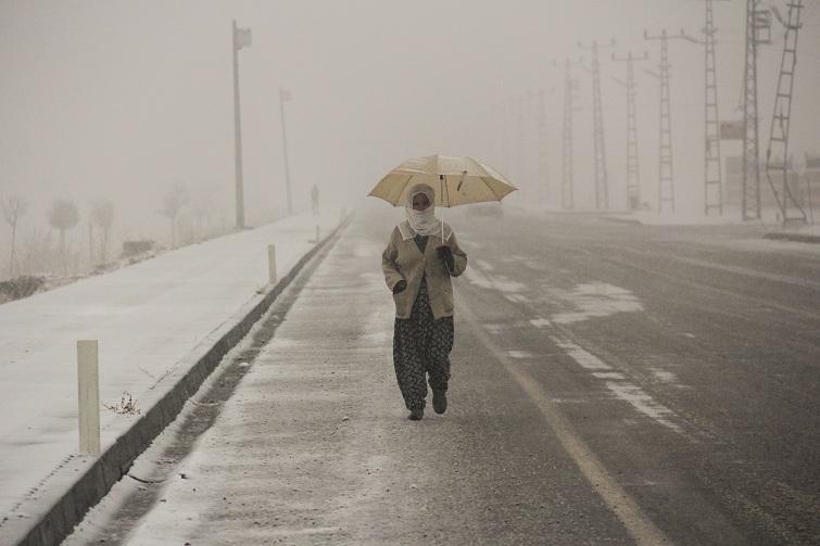 Güne karla uyanan halk, araçlarının üzerinde biriken karları temizledi.