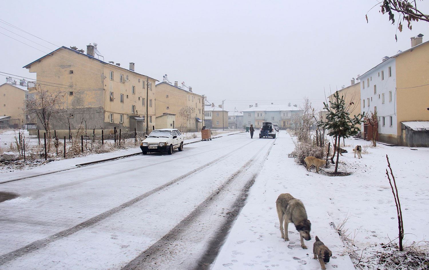 Kar yağışının aralıklarla devam ettiği ilçede, sokak hayvanları da yiyecek bulma ve soğuktan korunmada zorlandı.