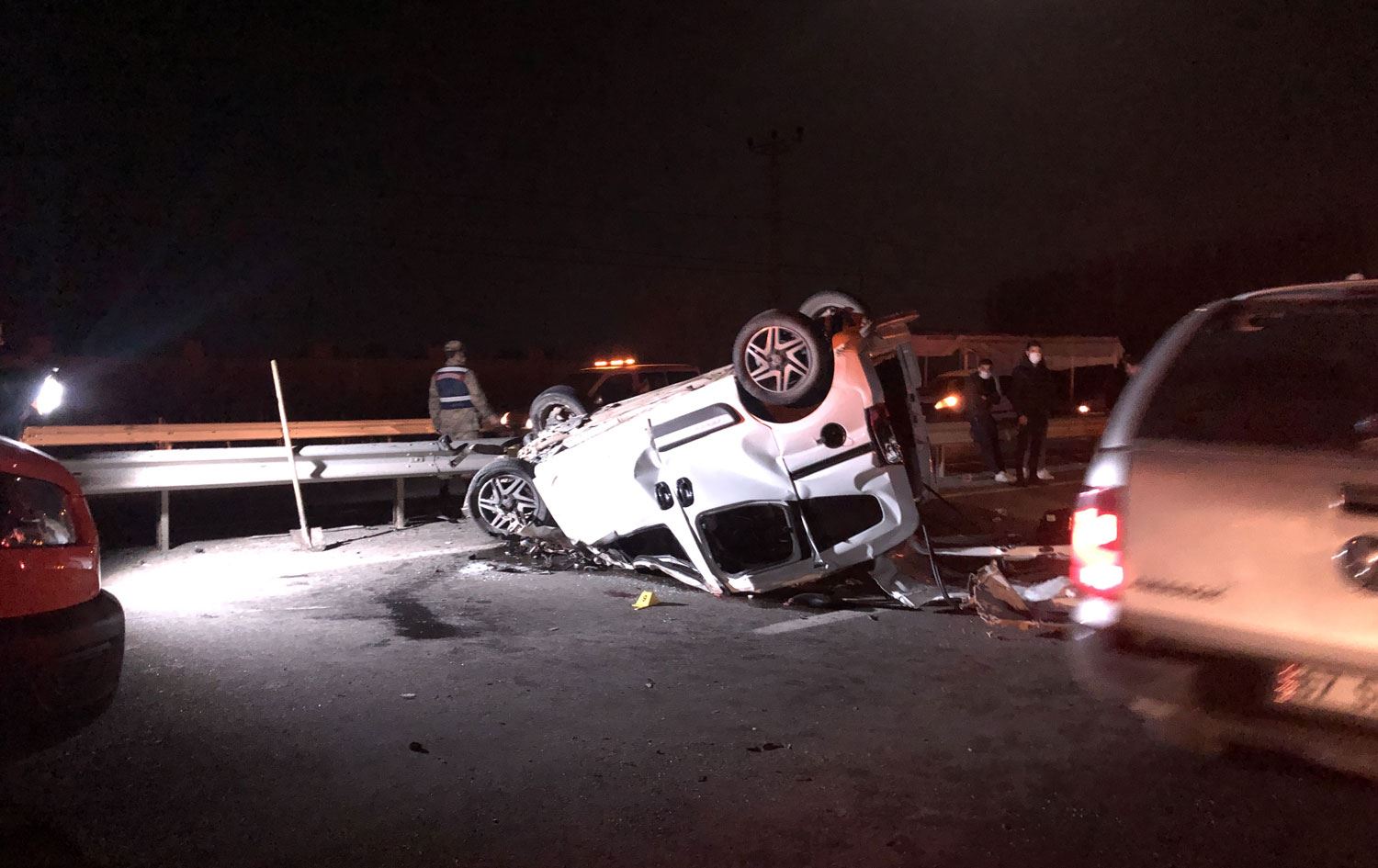 Çarpmanın etkisiyle savrulan hafif ticari araç takla attı. Çevredekilerin haber vermesi üzerine olay yerine sağlık ve jandarma ekipleri sevk edildi.