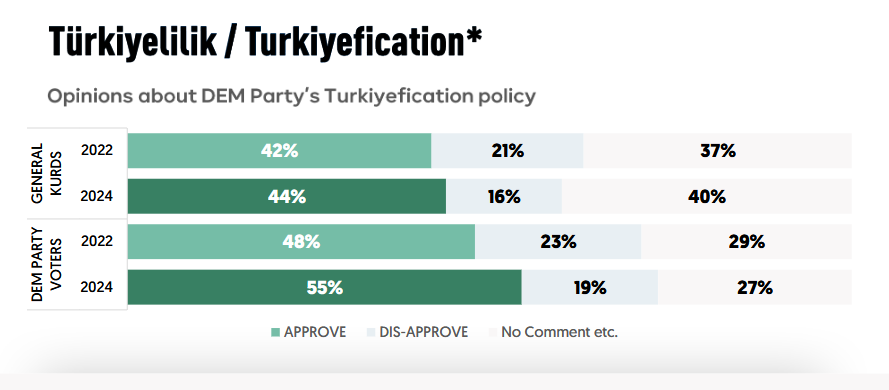 Bölgede yaşayan Kürtlerde Kürt kimliği ve partili kimlikler daha güçlü şekilde ifade edilirken, Batı'da yaşayan Kürtlerde muhalif kimlik öne çıkıyor. Örneğin Cumhuriyet Halk Partisi'ne bir yakınlık öne çıkıyor. Bu Türkiye muhalefetine yakınsamayla alakalı bir şey.
