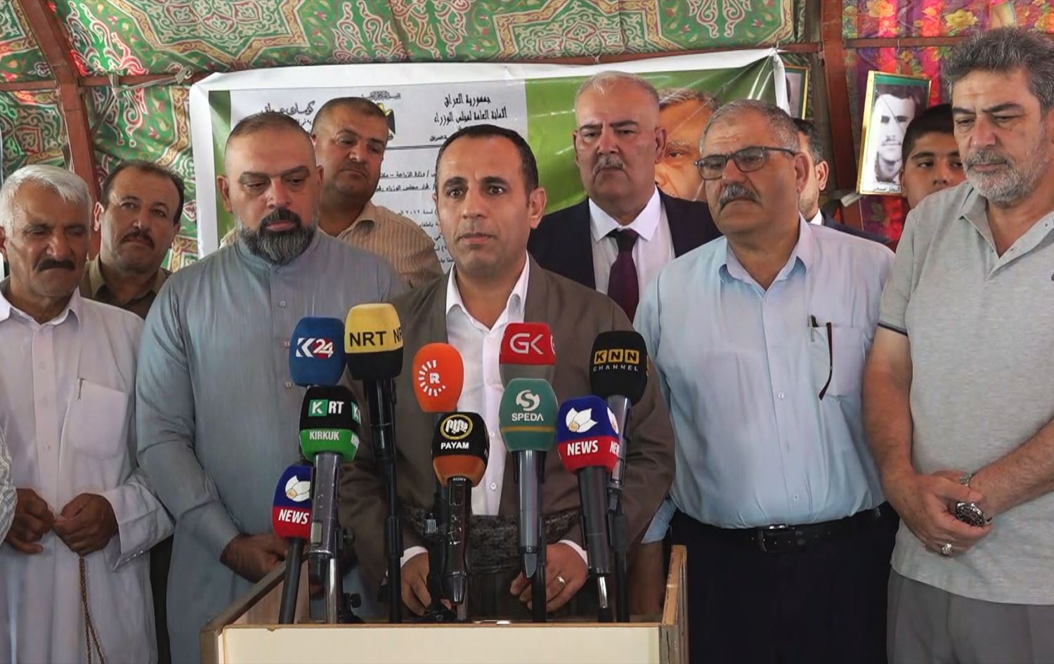 Bu amaçla 29 gündür kurdukları çadırda protestolarını sürdüren yaklaşık 500 Kürt ve Türkmen çiftçiyi ziyaret eden Kürdistan Bölgesi İdaresi Dışında Kalan Kürdistani Bölgeler Kurulu Başkanı Fehmi Burhan, burada bir basın açıklaması yaptı.