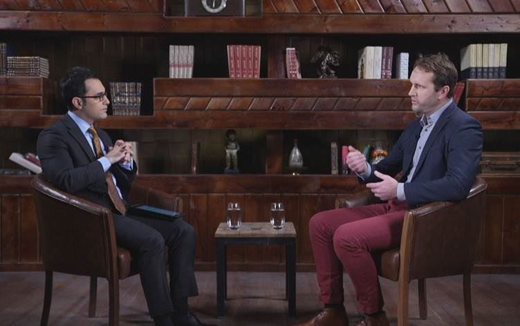 Hollanda'nın Erbil Başkonsolosu Jort Posthumus (sağda) Rûdaw TV’de Nwener Fatih’in sunduğu “Rûdawî Emro” programına konuk oldu. / Foto: Rûdaw