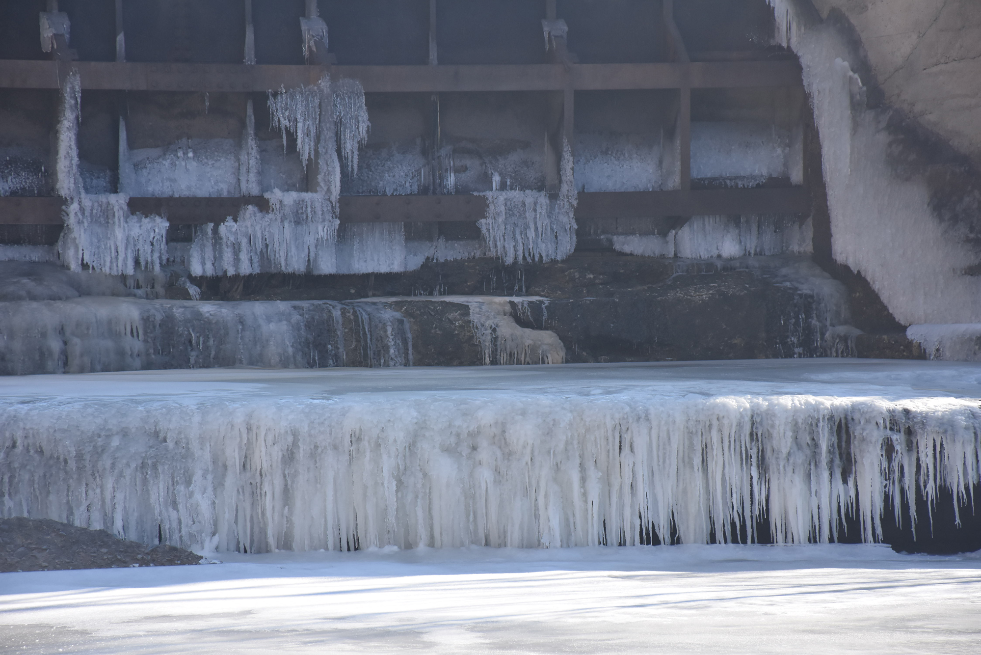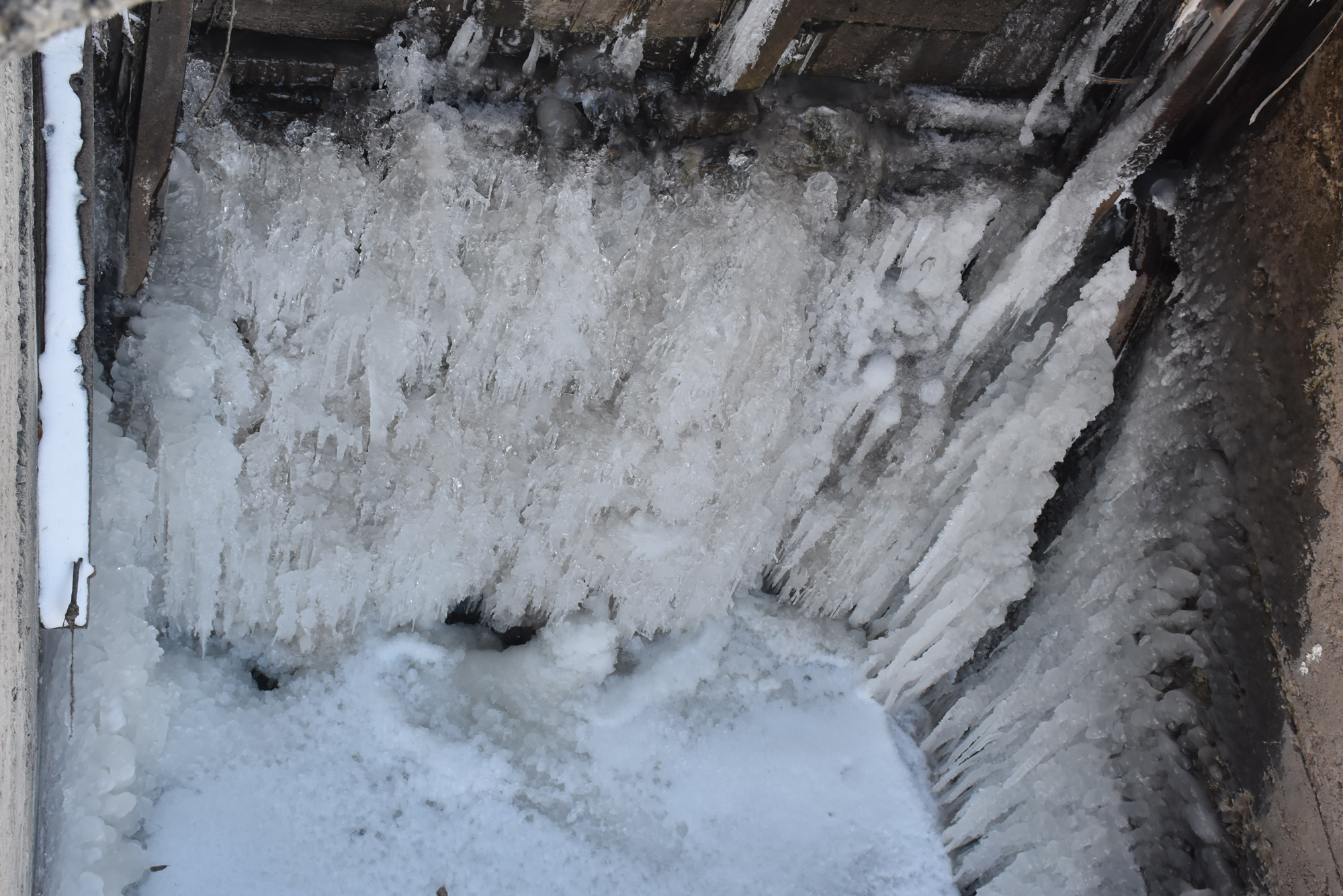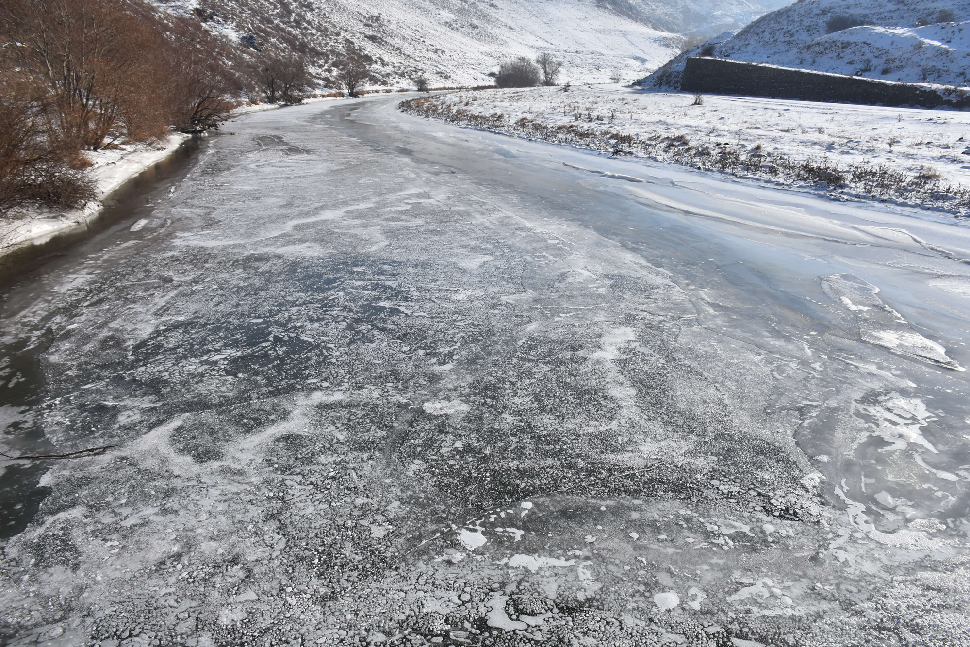 Etkili olan dondurucu soğuklar nedeniyle Kars'taki eski hidroelektrik santrali (HES) baraj gölünün yüzeyi ve Kars Çayı dondu.
