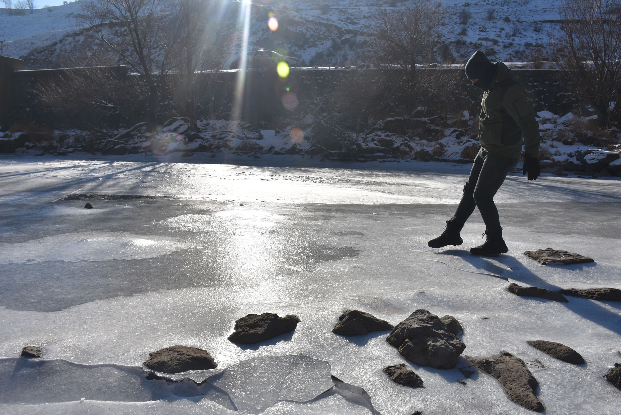 Hava sıcaklığının gece sıfırın altında 18 dereceye kadar düştüğü kentte dere ve göletler buzla kaplandı.
