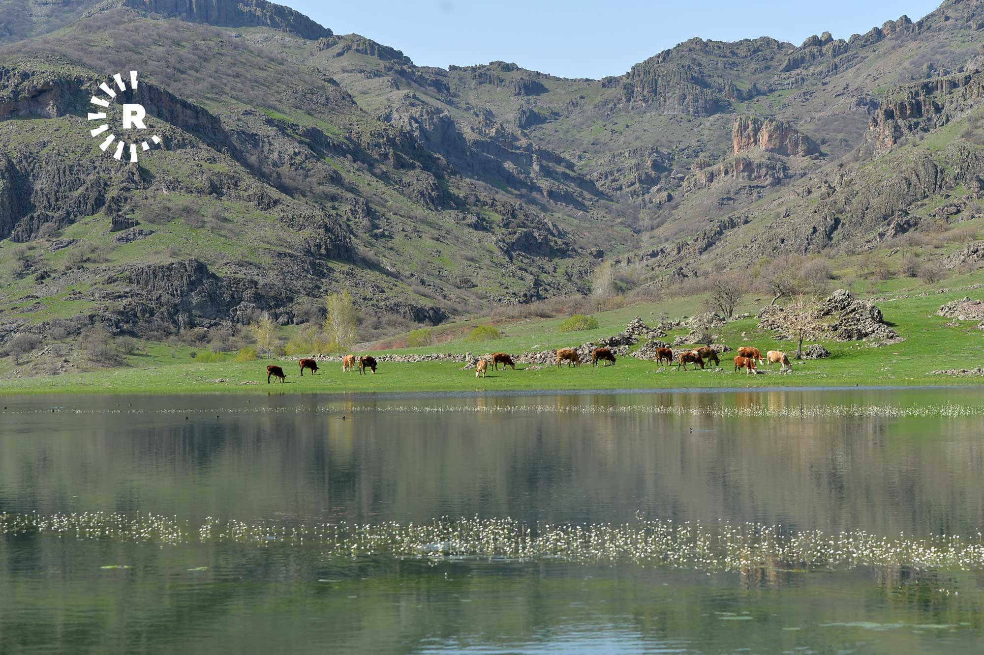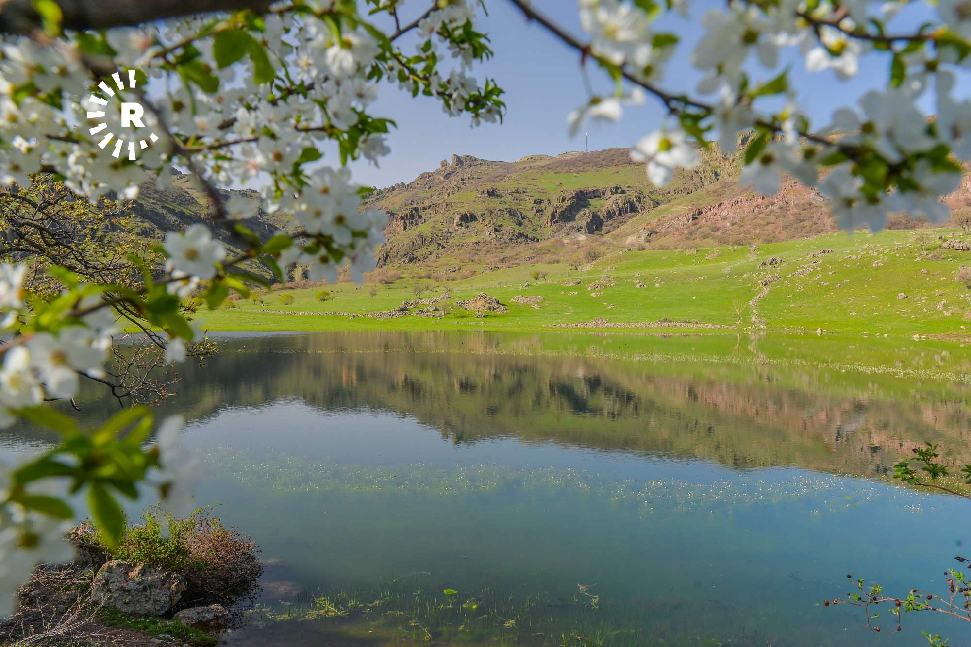 Dersim'in Mazgirt ilçesinde, kar ve yer altı sularıyla beslenen Sülüklü Göl ve çevresi, ilkbaharın gelişiyle renklendi.