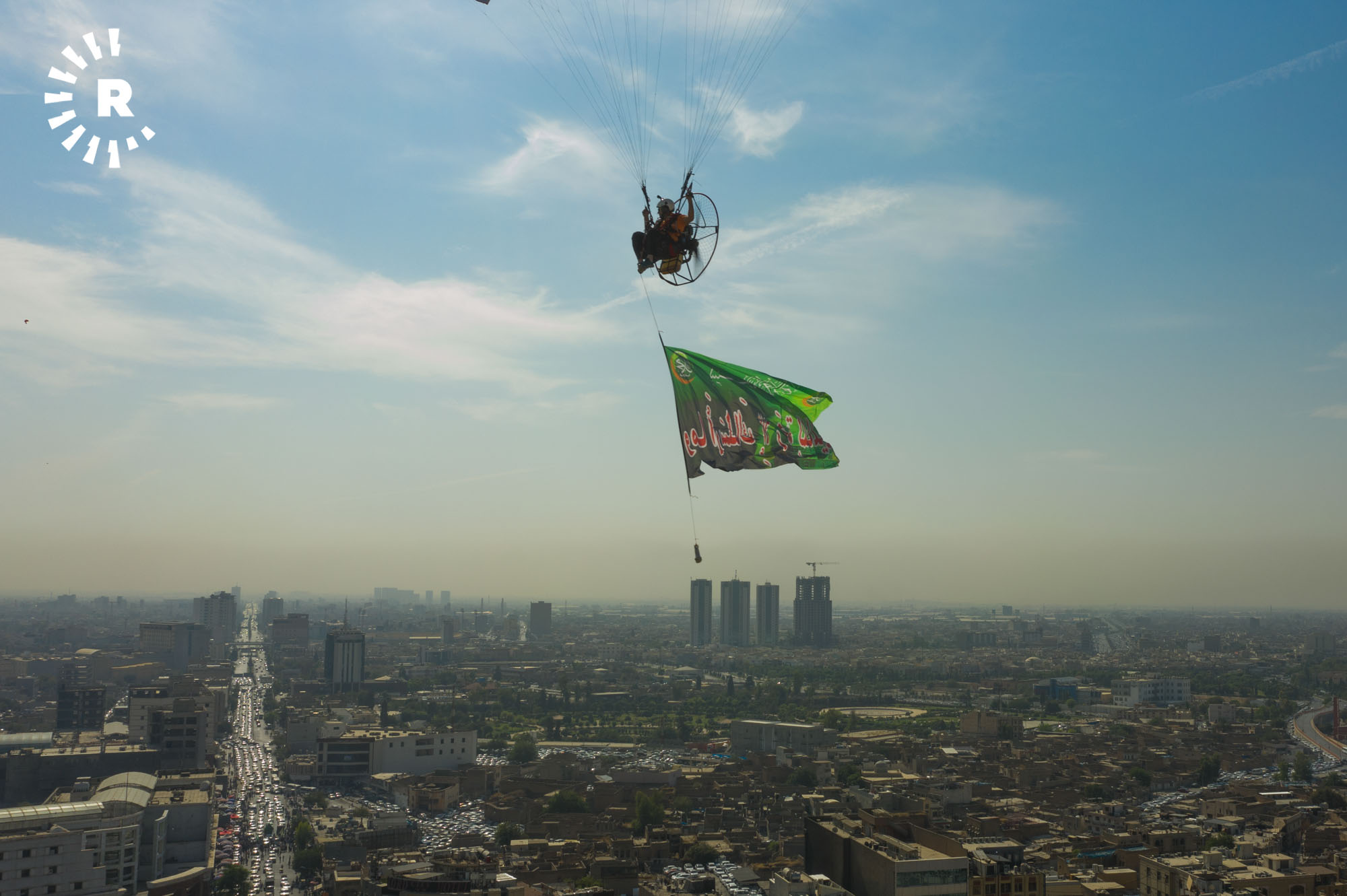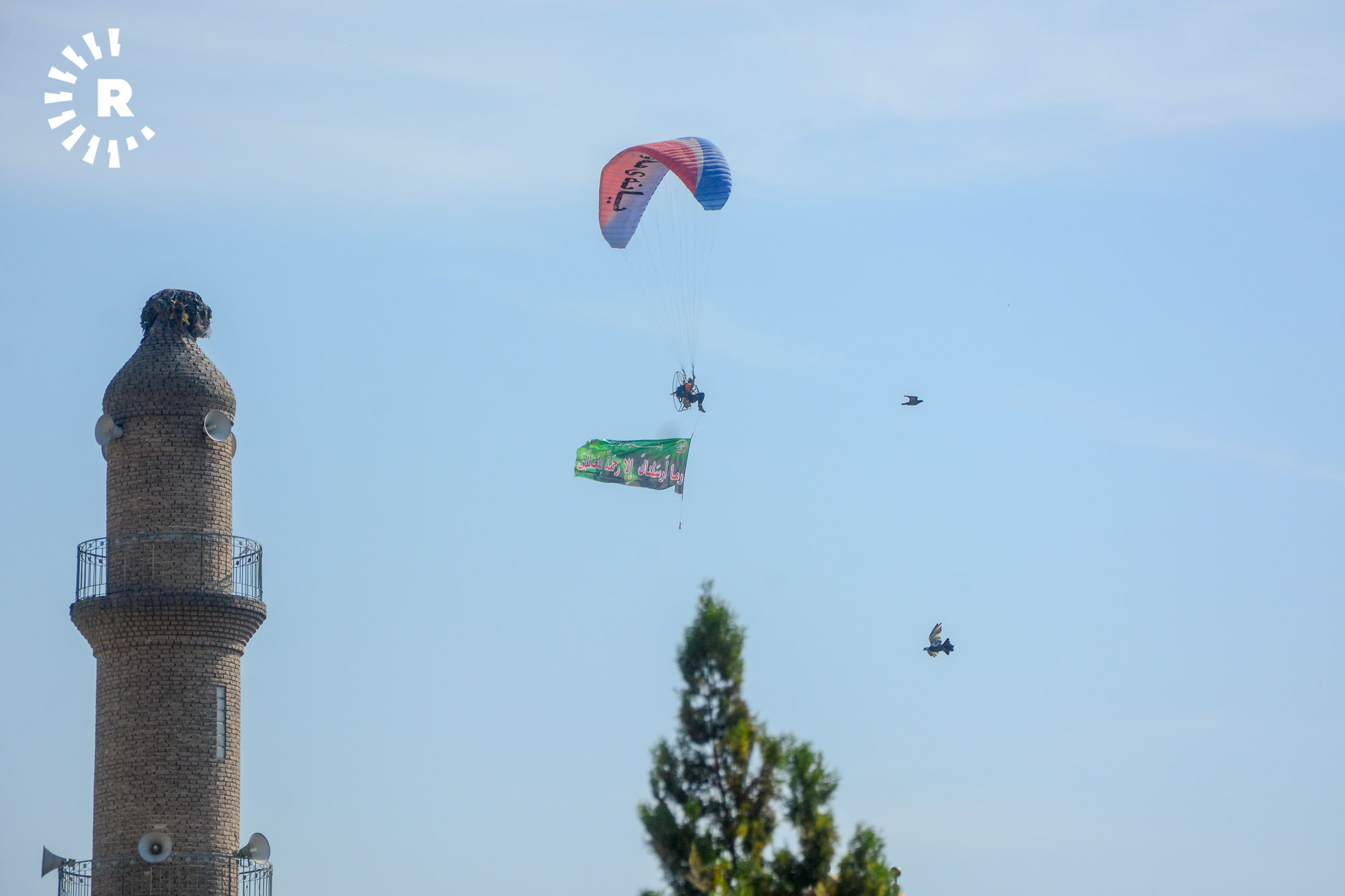 Erbil Kalesi’ne üzerinde “Muhammed” yazan dev bir pankart asıldı. Erbil Paraşüt Takımı da helikopterden üzerinde “Allah’ın Resülü Hz Muhammed” yazan paraşütle kutlama alanine atlayış yaptı.