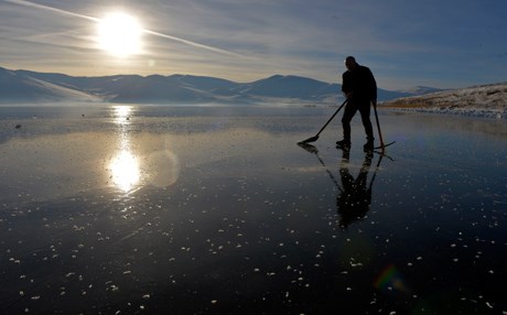 Etkili soğuklardan dolayı Ardahan-Kars sınırındaki bulunan ve bölgede Van Gölü'nden sonra ikinci büyük göl olan Çıldır Gölü'nün yüzeyi tamamen buz tuttu.