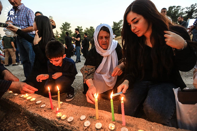 Anmada Newşirwan Mustafa’nın mezarına çiçek bırakıldı, mumlar yakıldı ve fidanlar dikildi.