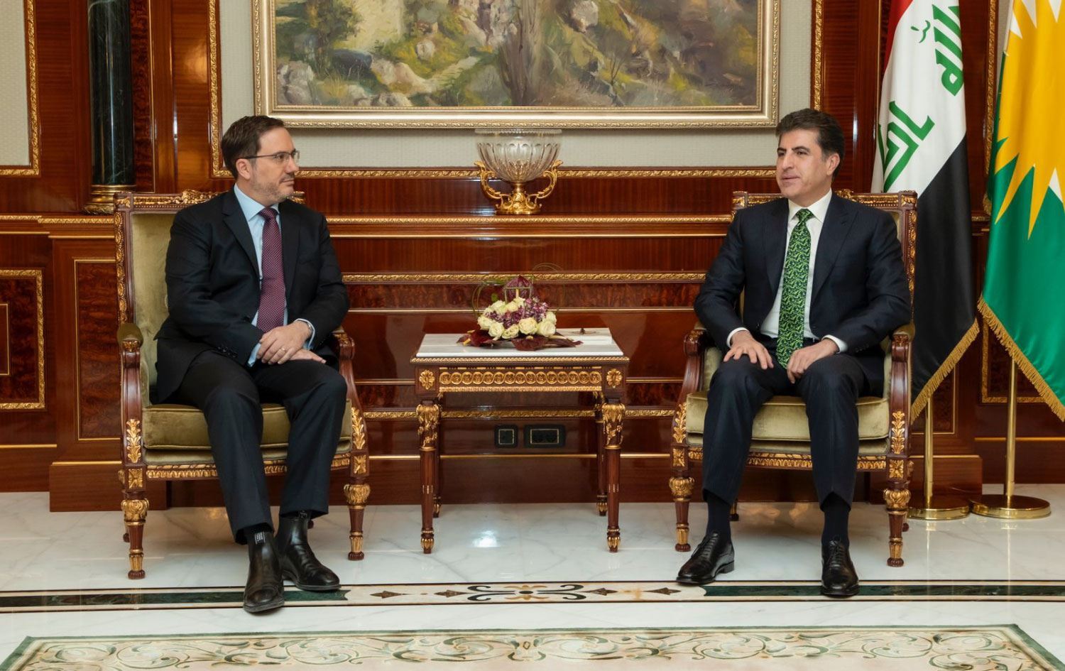 Kürdistan Bölgesi Başkanı Neçirvan Barzani, başkent Erbil’de İngiltere'nin Irak Büyükelçisi Mark Bryson Richardson ve beraberindeki heyet ile görüştü.