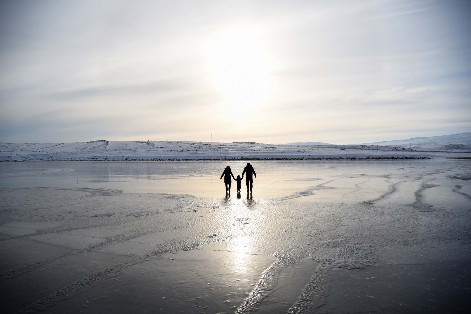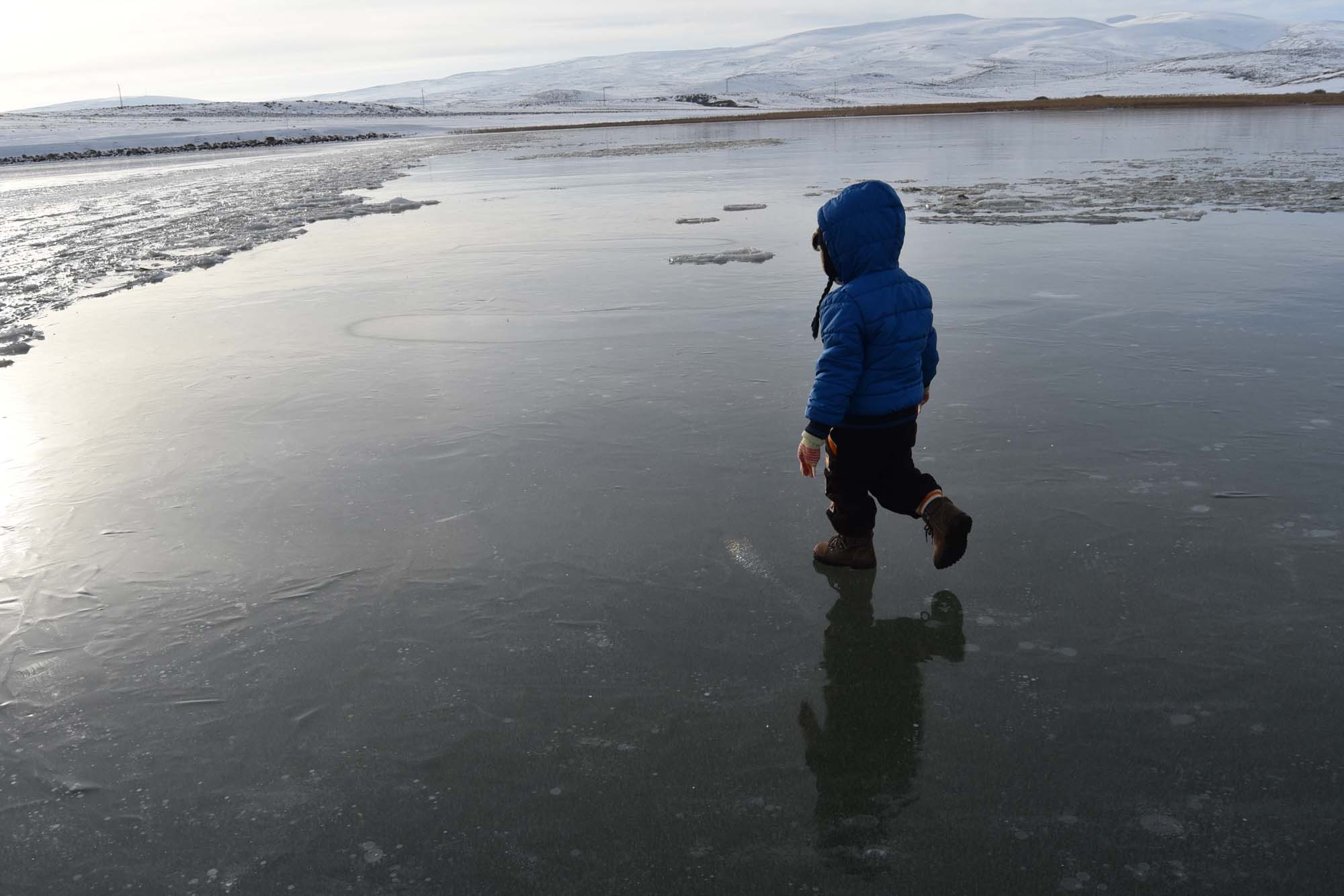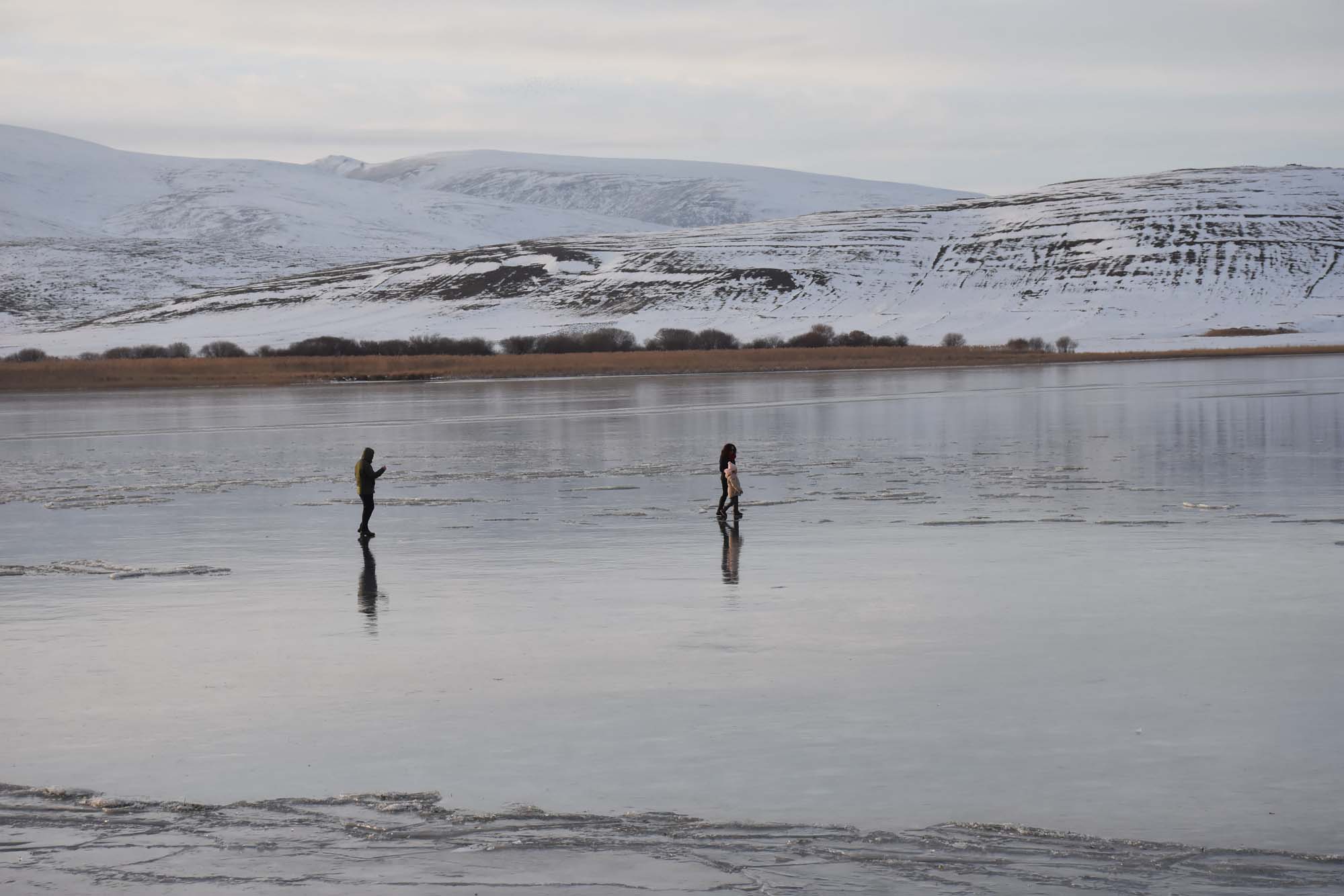 Kars'ın Arpaçay ilçesine bağlı Taşbaşı (Karklux) köyü mevkiinde gölün donmasıyla buz kalınlığı yaklaşık 25-30 santimetreye ulaştı.