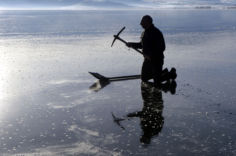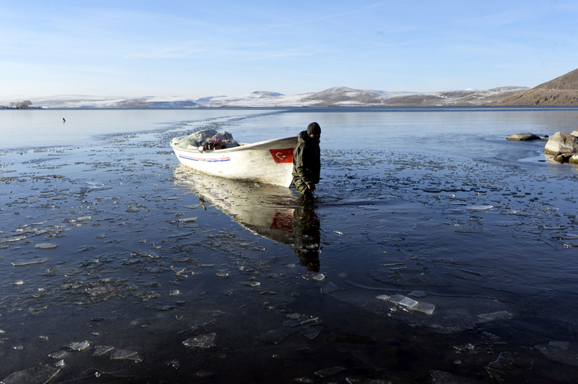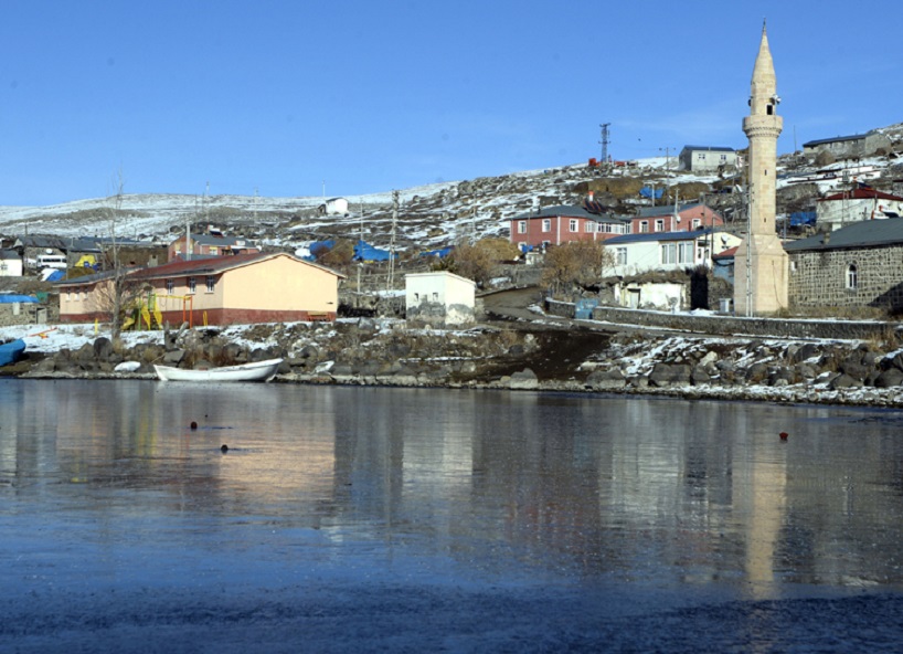 Atlı kızaklarla gezintiye çıkılan Çıldır Gölü’nün donmasıyla balıkçılar da sandallarını kıyıya çekti.