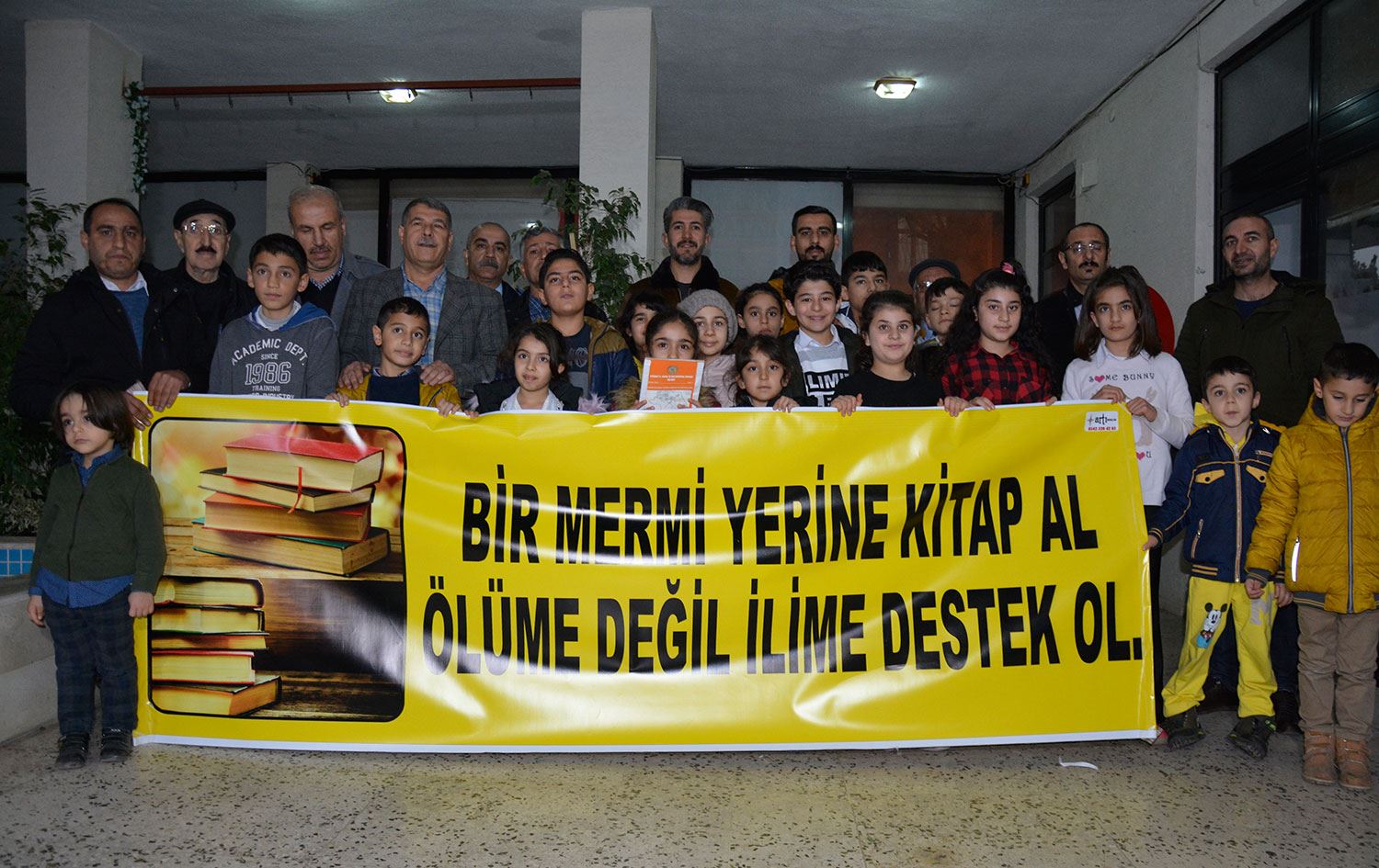 Grup “Bir mermi yerine kitap al, ölüme değil ilime destek ol” pankartıyla açıklama yaptı.