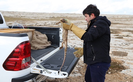 Yaklaşık bir metre uzunluğundaki çöl varanının üzerinde herhangi bir darbe izine rastlanmayan ekipler, hayvanın açlık ve soğuk hava nedeniyle telef olduğunu söyledi.