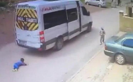 Üzerinden minibüs geçen çocuğun kazayı yara almadan atlatması dikkati çekti.