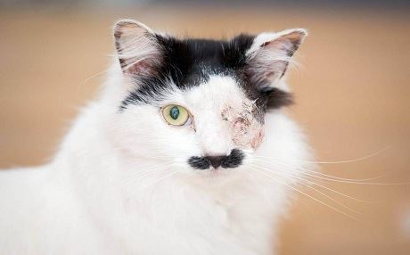 Baz, bıyıkları Hitler'i anımsattığı için kötü muameleye maruz bırakılıp, bir gözü kör edildi. 5 aylık tedaviden sonra durumunun iyi olduğunu belirten sahibi, kedinin, tekrar dışarı çıkmak için yeterince özgüveni olduğunu söyledi.