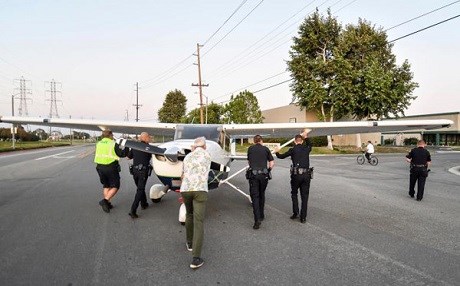 Ortaya çıkan sorun üzerine pilot uçağı Huntington Beach'teki Hamilton Caddesi üzerine indirmeyi başardı.