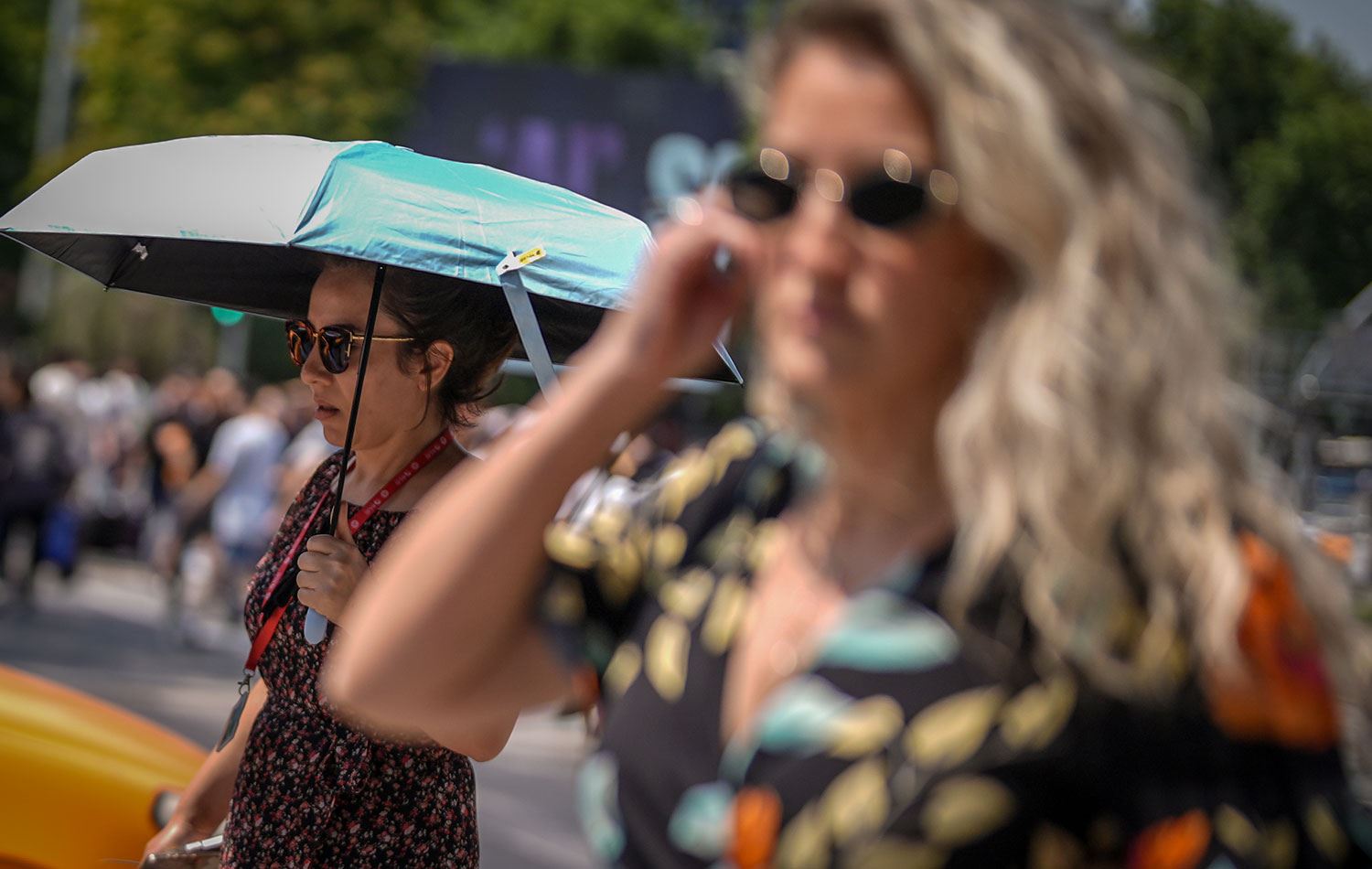 Ankara'da sıcak hava etkili oldu. Vatandaşların sıcak havadan korunmak için şemsiye kullandığı görüldü. / AA