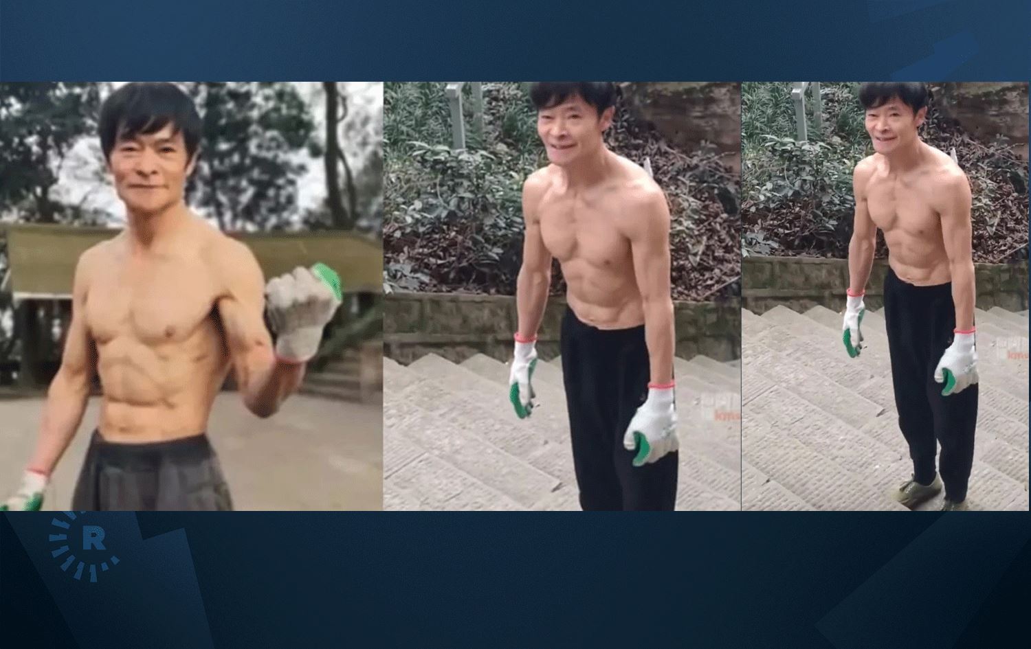“Chongqing'den 70 yaşında bir 'tersine büyüme' fitness gurusu! Uzun siyah saçları var, vücut yağ oranı %3 ve tendonlarla dolu bir vücudu var” diyor viral videonun başlıklarından birinde.