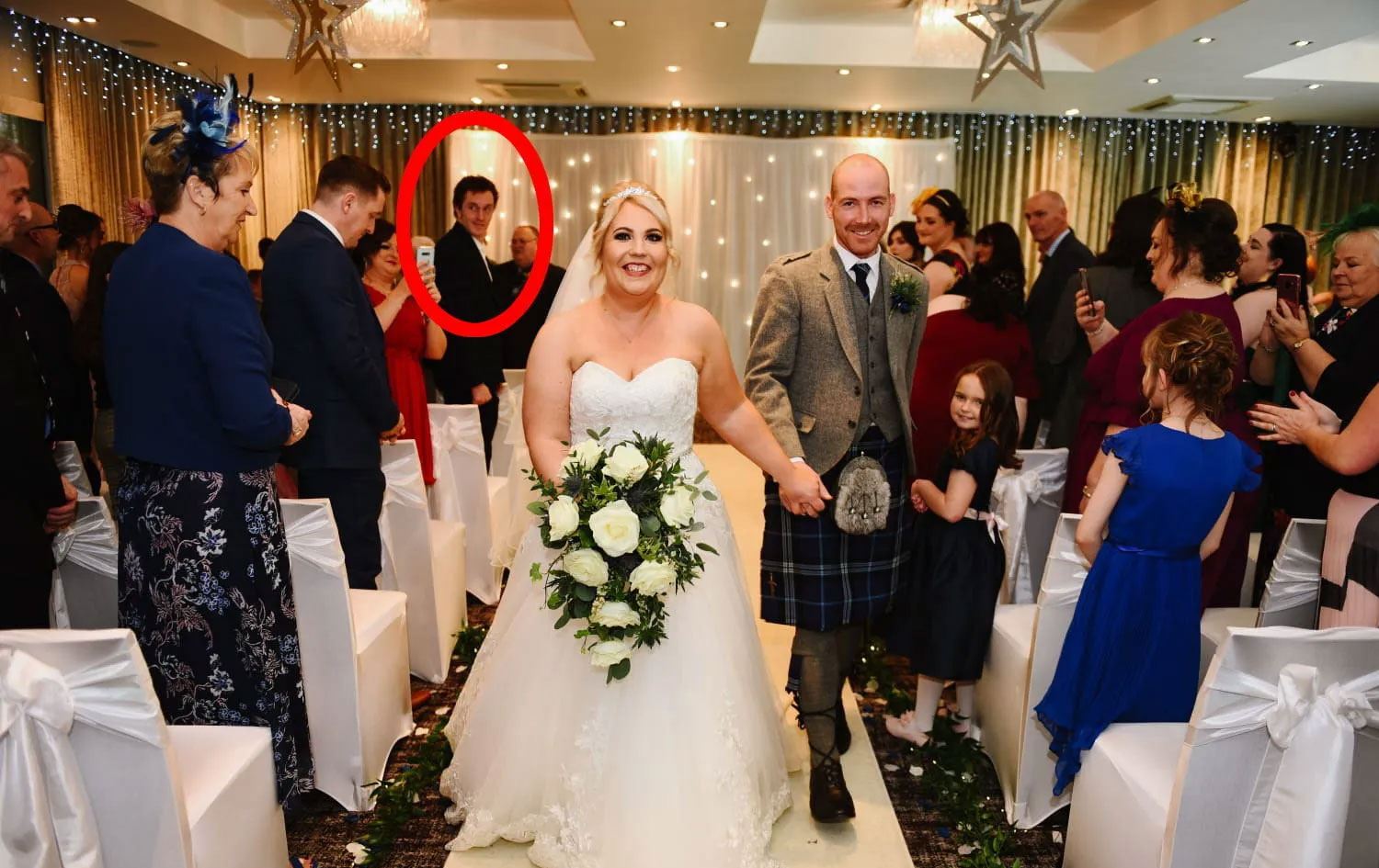 Ancak düğün fotoğraflarına bakarken, gelin Michelle Wylie tanımadığı bir davetsiz misafiri fark etti.