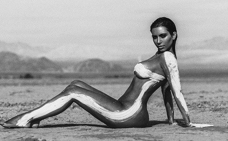 Boyayla vücudunun bazı kısımlarını kapatarak pozlar veren Kardasian, sosyal paylaşım sitesi Instagram hesabından fotoğrafları yayımlayarak, günün en çok konuşulanı oldu.