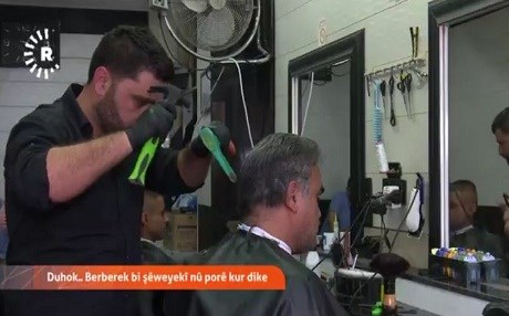 Duhok (Rûdaw) – Duhok’ta 2 kardeşiyle birlikte berberlik yapan Kawar Nimet, müşterilerinin saç traşını çekiş ve baltayla yaparak, sıradaşı bir yöntem kullanıyor.