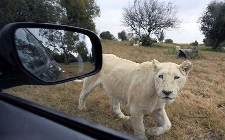 Güney Afrika'nın Johannesburg kentinde aslanlar için kurulan Gauteng Aslan Parkı'nı eşiyle ziyaret eden 22 yaşındaki kadın tüm uyarılara rağmen otomobilinin camını açık tuttu.
