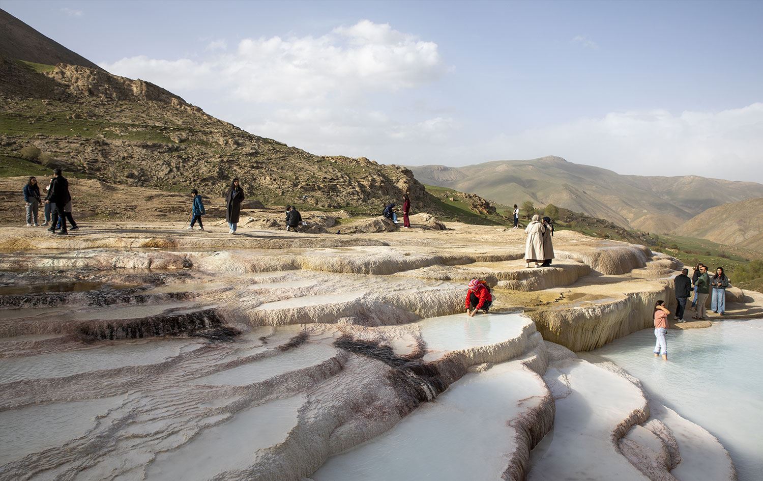 Pamukkale'deki oluşumlara benzerliğiyle bilinen travertenleri ziyaret edenler, temiz havada doğayla iç içe zaman geçirme fırsatı buluyor.