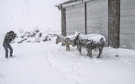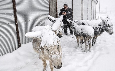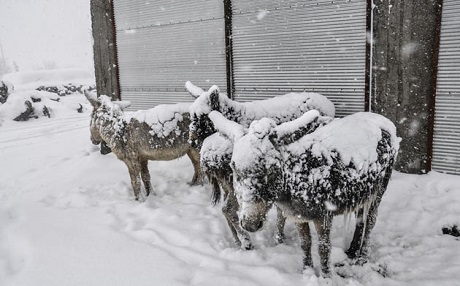 Haber Merkezi - Urfa'nın Siverek ilçesinde kırsal alana terk edilen eşeklerin, kar yağışı ve soğuk hava nedeniyle üzerleri buz tabakasıyla kaplandı.